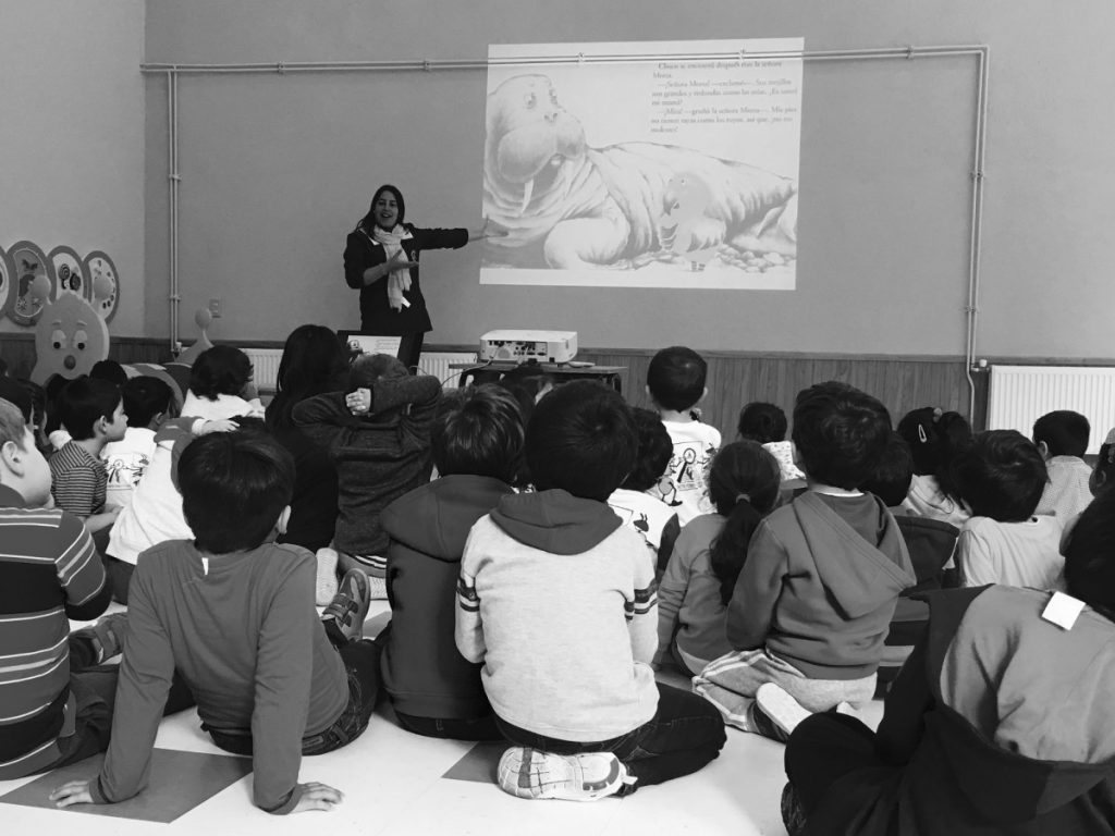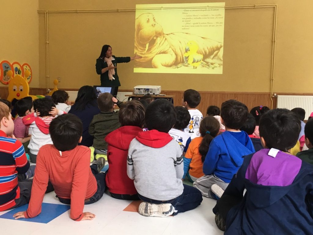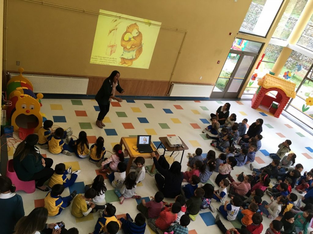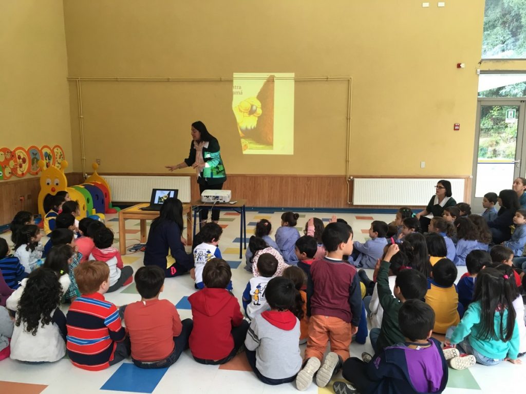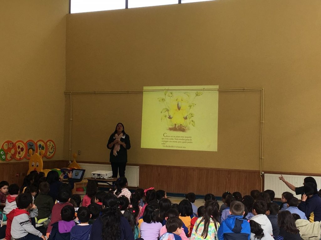 En esta instancia, los niños y niñas de los niveles Medio Mayor, Pre Kinder, Kinder, Primero y Segundo Básico, participaron de la narración de un cuento especialmente preparado para ellos/as. La actividad fue realizada con los niveles preescolares en el Hall del Edificio Parvulario y con los Primeros y Segundos Básicos en la Biblioteca Central de nuestro Colegio.