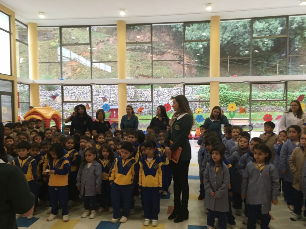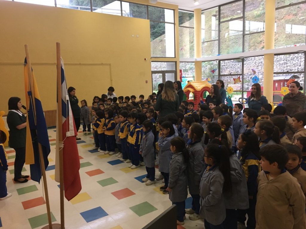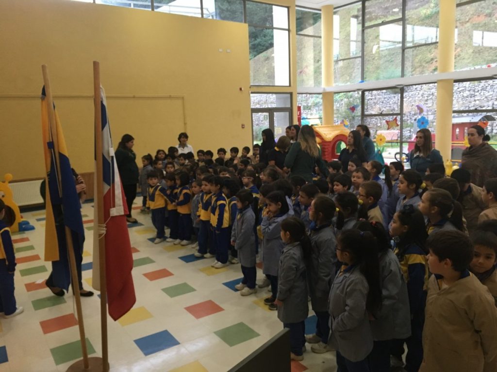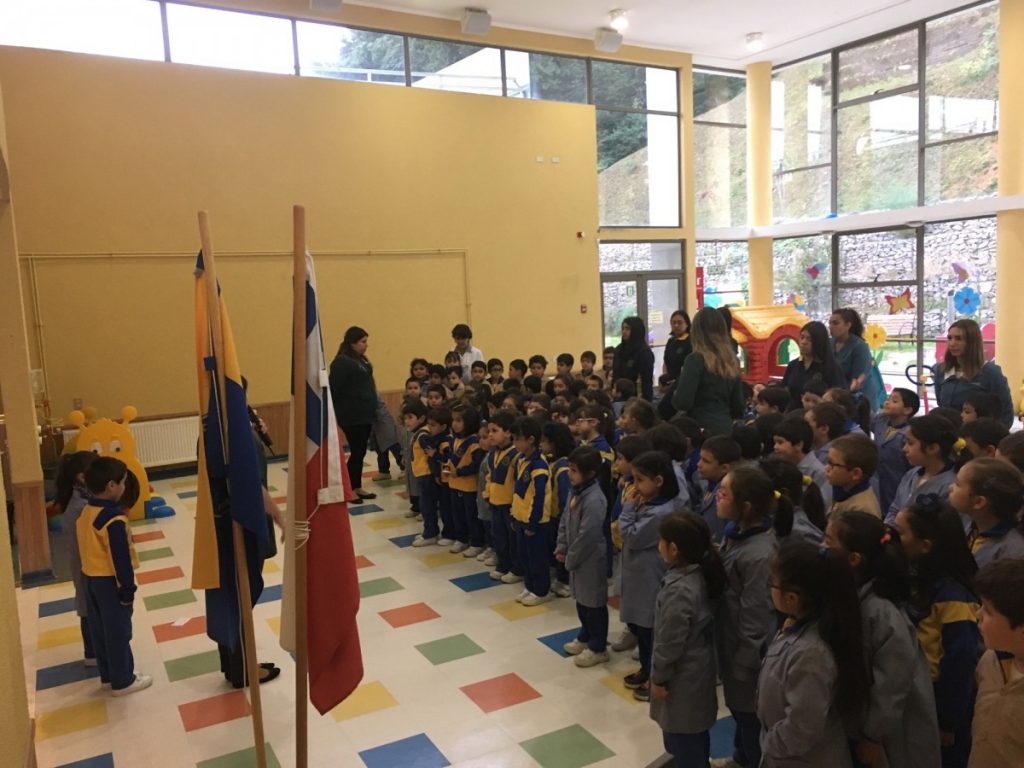 Considerando la relevancia que tiene para nuestro establecimiento educativo promover en nuestros estudiantes, desde los niveles iniciales los aspectos referidos a la Formación Ciudadana, apuntando a la valoración de los aspectos culturales de nuestro país, es que se realizan diversas acciones tendientes a su promoción; entre las cuales se destacan los actos cívicos. Este lunes 02 de abril en el hall del edificio de educación preescolar se llevó a cabo el primer acto cívico de este año.