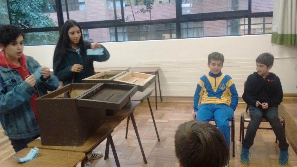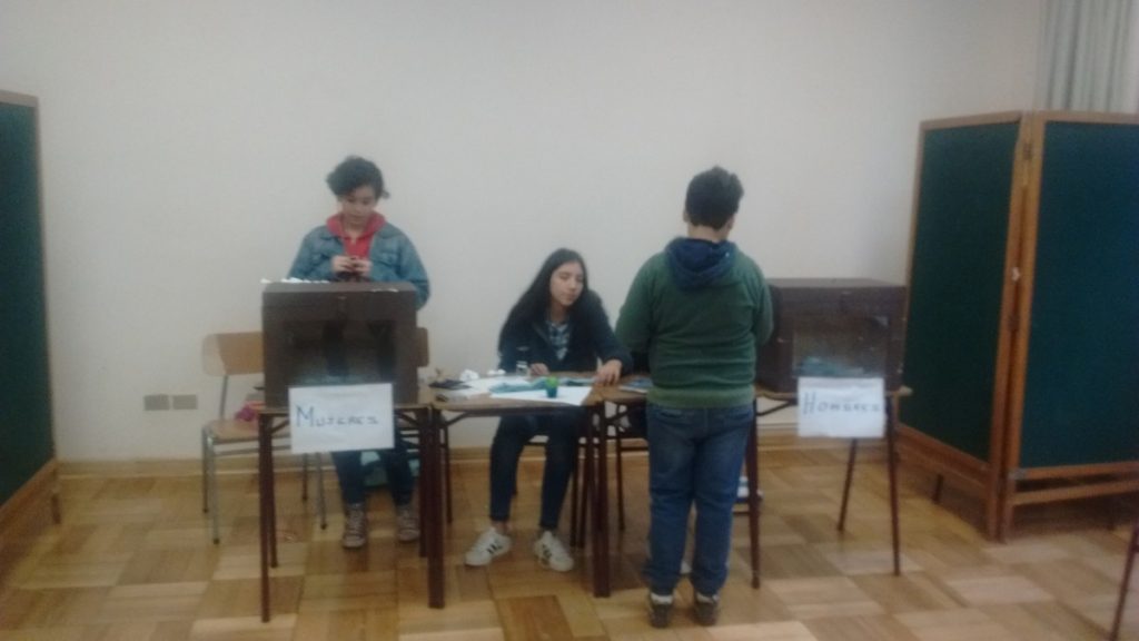 El Jueves 26 del presente mes, enmarcado en el proceso eleccionario del centro de alumnos 2018-2019, se realizaron las votaciones por el alumno representante de básica. Participaron los alumnos de quinto y sexto básico de manera entusiasmada y comprometida. Con esta actividad se potencia la formación ciudadana y cívica de nuestros alumnos, así como la valoración de los procesos democráticos y participativos bajo la tolerancia y el respeto por el otro.