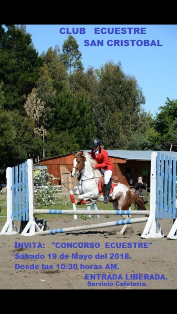 El Club Ecuestre San Cristobal invita a asistir al «Concurso Ecuestre» a realizarse el sábado 19 de mayo a partir de las 10:30 hr en sus dependencias, ubicadas en Arteaga Alemparte S/N (a un costado de la Universidad Federico Santa María).