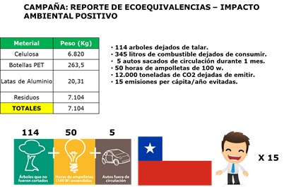 Nuestro Colegio desarrolla campañas mensuales de reciclaje con el objeto de generar en la Comunidad una conciencia ambiental que permita relacionarnos y proteger el ambiente natural de nuestro país en forma directa (ver tabla de ecoequivalencias).