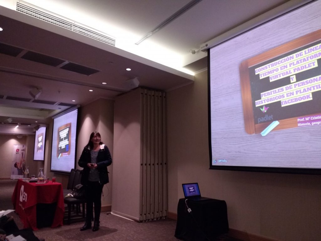 La profesora María Cristina Bascur, docente del departamento de Cs. Sociales, participó como expositora en el 5° Seminario de experiencias TIC, organizado por la editorial SM, realizado el jueves 17 de mayo en el Hotel Atton de Concepción. En esa oportunidad presentó la herramienta TIC: “Construcción de una línea de tiempo en plataforma padlet y perfiles de personajes en plantillas Facebook”, recibiendo muchas felicitaciones por el público asistente.