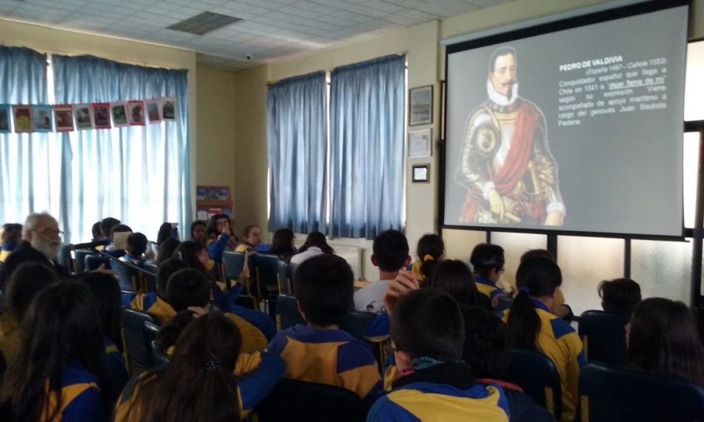 El destacado historiador regional Alejandro Mihovilovich Gratz, dictó una charla en nuestro Colegio, dirigida a los alumnos y alumnas de sexto básico, sobre el tema Historia de Chile.