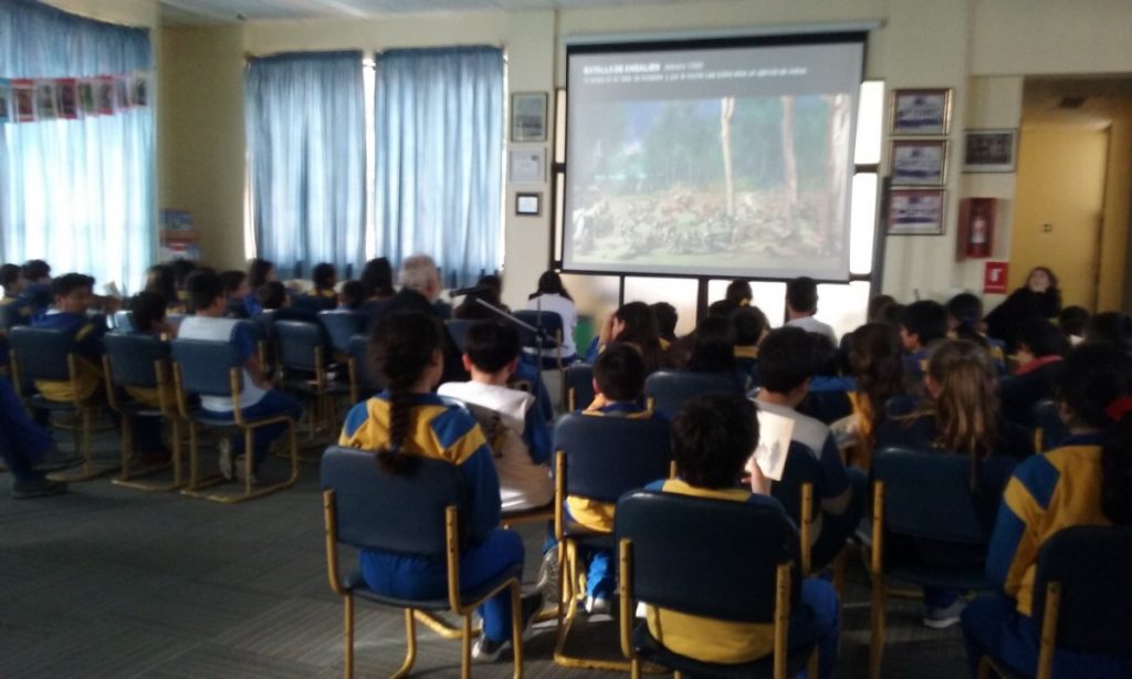 La actividad se desarrolló en la biblioteca de nuestro Colegio, el miércoles 04 de julio y los estudiantes disfrutaron con los interesantes relatos y los documentos fotográficos del profesor Mihovilovich, quien además les dejó de regalo un documento de su autoría.