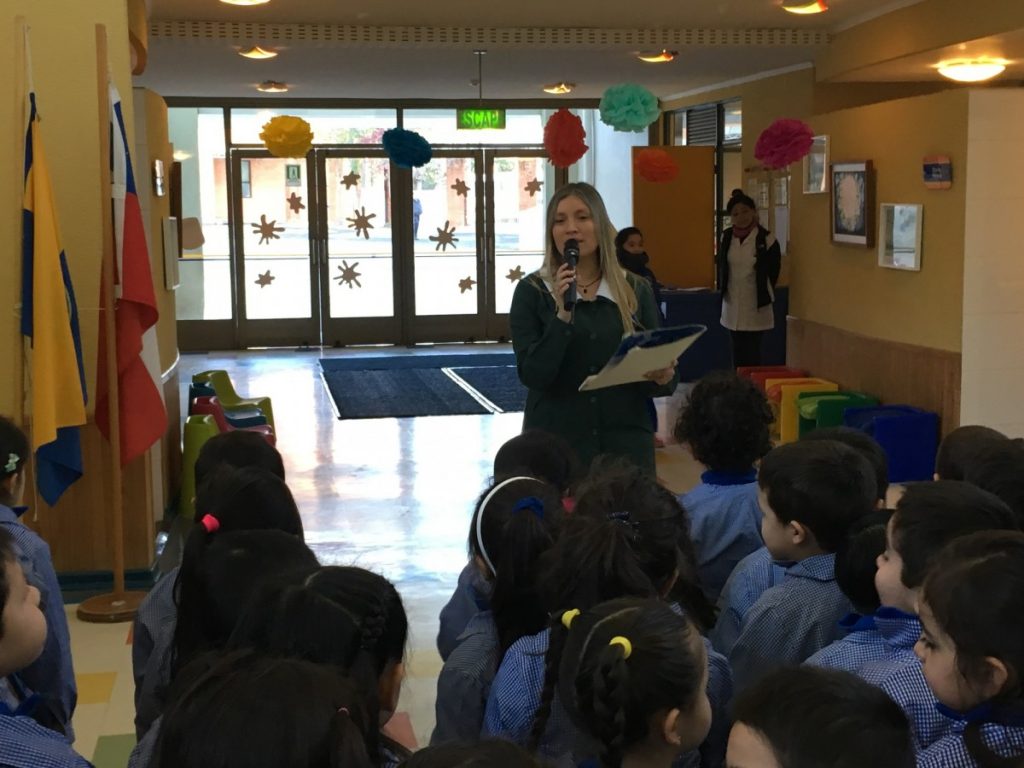 En dicha actividad, participaron los niños y niñas del Departamento de Formación Inicial, además de entonar los himnos, tanto nacional como de nuestro colegio, los estudiantes revisaron las efemérides más relevantes del mes. Destacándose particularmente, la conmemoración del día de la bandera, la que se celebra en Chile el 9 de julio de cada año en conmemoración de los eventos producidos en la Batalla de La Concepción, durante la Guerra del Pacífico.