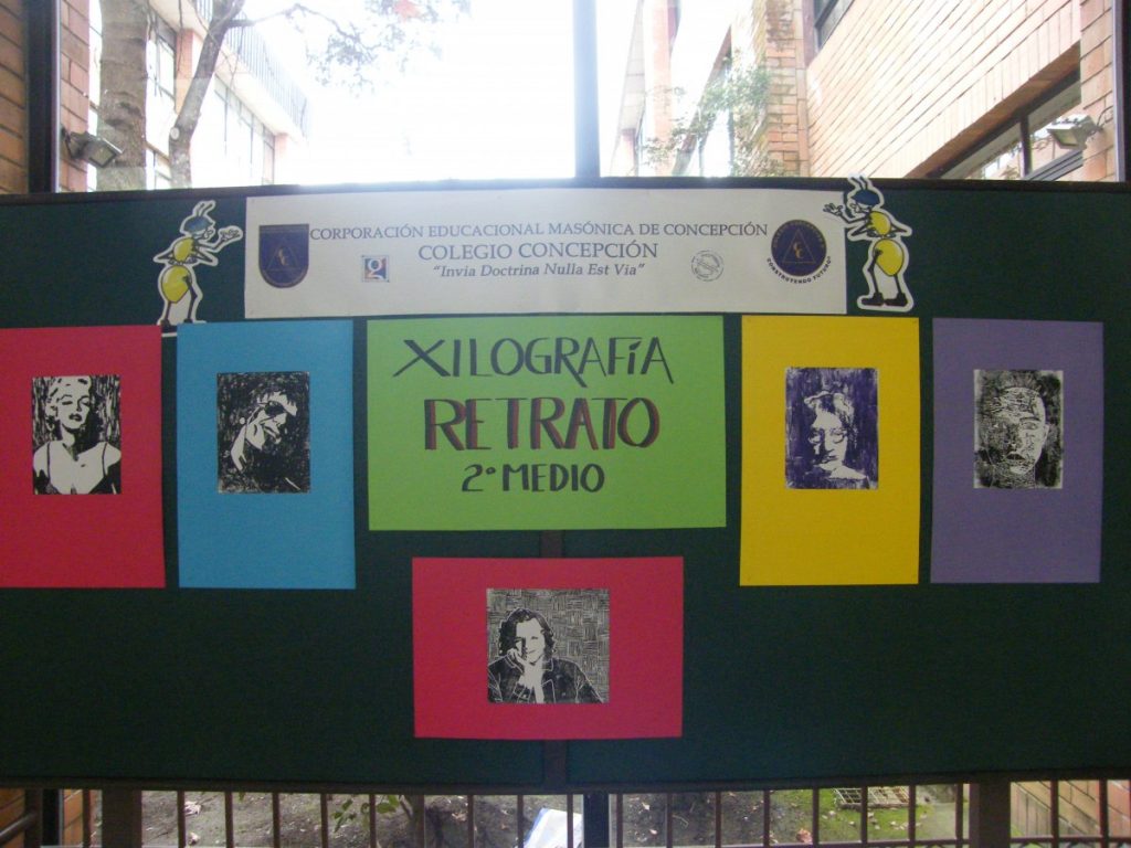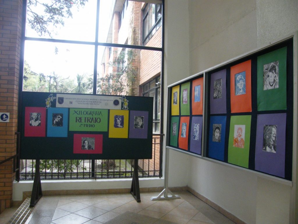 Estudiantes de 2º Medio, exponen sus trabajos pictóricos en el Hall del Colegio Concepción. La muestra consta de 17 grabados en xilografía, trabajadas por los alumnos con la temática “El retrato”, tema tratado en la unidad “Descubriendo el rostro”, donde los alumnos trabajan la técnica del grabado en xilografía, expresando a través del tallado de la madera y luego su impresión su visión personal del tema, basándose en un referente fotográficos de distintos rostros de personajes públicos, con el fin de hacer conciencia del respeto y la tolerancia hacia los otros en las distintas instancias de la vida, la empatía y comprensión reflejada a través de la expresión del rostro humano; reforzando los valores de nuestro colegio, lo cuales son parte de los cuatro ejes fundamentales de nuestro proyecto educativo.