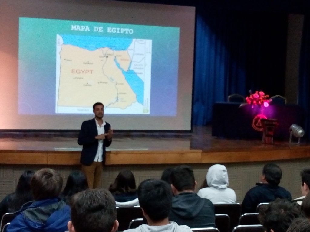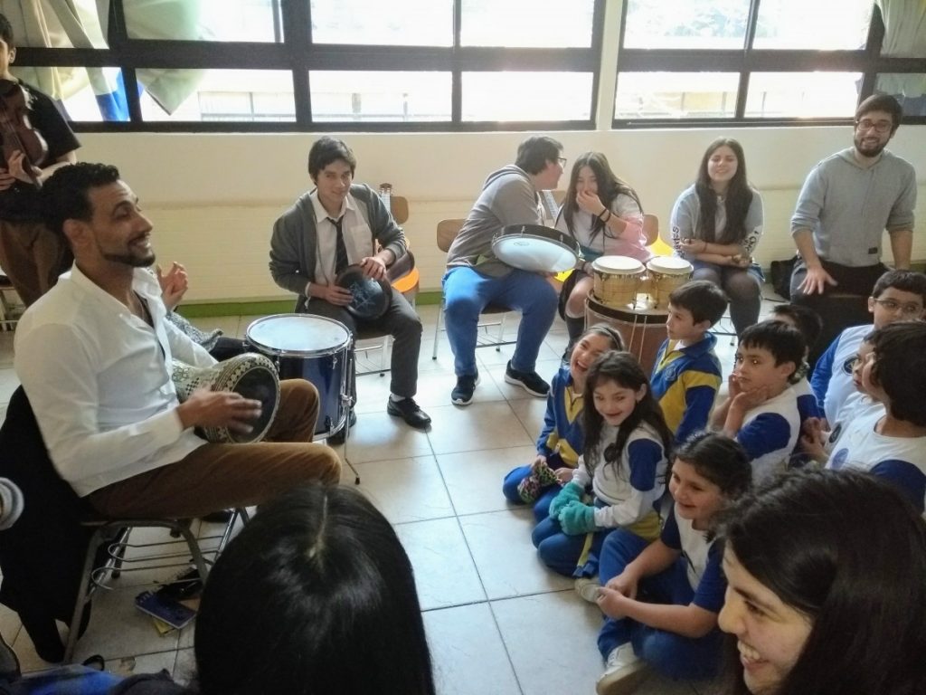 El pasado 2 de octubre se realizo el proyecto «Encanto del Nilo» adjudicado por los fondos concursantes del centro de Padres, en esta ocasión el músico percusionista Egipcio Bassem Ramadán realizó una charla a alumnos de nuestro Colegio sobre la historia de la danza en Egipto y luego un taller de percusión al que asistieron las alumnas del taller de danza árabe, alumnos del taller de banda y electivo de música.