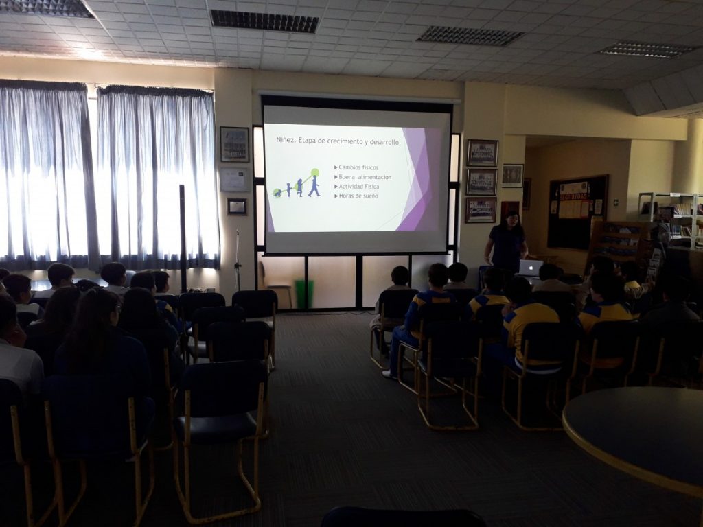 En el marco del Proyecto de Innovación Pedagógica que está elaborando el Departamento de Educación Física, que tiene como nombre “Mejorando los Hábitos de Vida Saludable, Actividad Física, Sedentarismo y Obesidad en los Estudiantes del Colegio Concepción”, se llevó a cabo la segunda charla nutricional para todos los estudiantes que están participando de este plan piloto a cargo de la nutricionista y ex alumna de nuestro Colegio, señorita Valeria Hinojosa Cerna, en esta oportunidad la temática fue: «Alimentación y hábitos saludables en la niñez y adolescencia», ocasión en que los estudiantes tuvieron una excelente participación y pudieron compartir con la nutricionista dudas, preguntas y consultas que tenían.