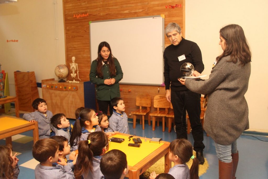 Dada la importancia de establecer aprendizajes situados en diversos contextos educativos y en directa vinculación con la comunidad de la cual forman parte. Al mismo tiempo, considerando la relevancia de desarrollar diversas iniciativas que apunten a la promoción de actitudes indagatorias en las que se promueva la curiosidad e interés de los niños y niñas, asociadas a las ciencias, es que, los niveles pre kinder recibieron en la sala de ciencias del nivel preescolar al Rector de la Universidad de Concepción, Don Carlos Saavedra, el pasado viernes 14 de junio.