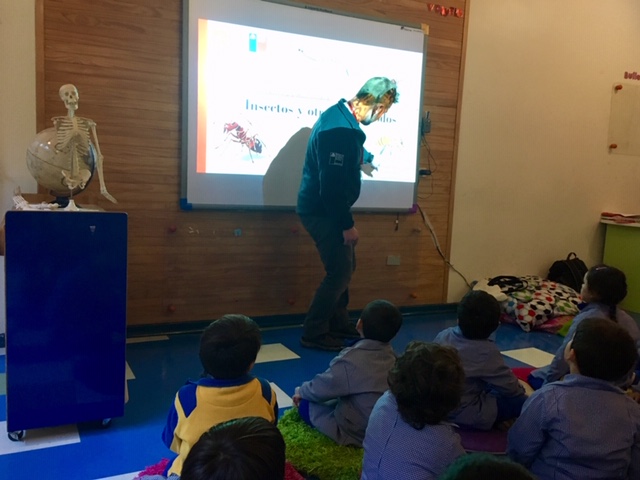MUVACO es un programa propuesto por el Museo Nacional de Historia Natural en el que “curadores” del museo se trasladan a distintos lugares de la región Metropolitana o del país, a presentar talleres y exposiciones propias de su quehacer. En esta oportunidad se presentó a los más pequeños un taller a cargo del Profesor Alexander Otárola titulado Insectos y Artrópodos . A través de esta actividad los alumnos pudieron observar y comparar las características principales de los artrópodos y otros invertebrados, además los estudiantes comentaron sobre las características de los seres vivos (generalmente mascotas) que eran de su conocimiento e interés, y observaron nuevos grupos de animales. Por su parte la enseñanza Bàsica y media trabajó con el Sr. Jhoann Canto, en un tema relacionado con evolución “Evolución de los Cetáceos”, “ Mamíferos de Chile y Extinción y Origen de los Mamíferos , el cual apunta a fortalecer el nuevo programa de estudio para la enseñanza media en el área de ciencias.