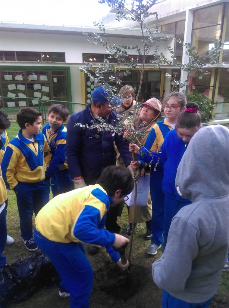 En esta oportunidad el Club de Jardines Concepción nos regaló árboles nativos, Arrayan y Canelo, que fueron plantados en el patio del colegio por alumnos de 5° Básico, siendo una experiencia muy gratificante para todos. Agradecemos el apoyo de esta institución que siempre trabaja con nuestros alumnos a promover el cuidado del medio ambiente.