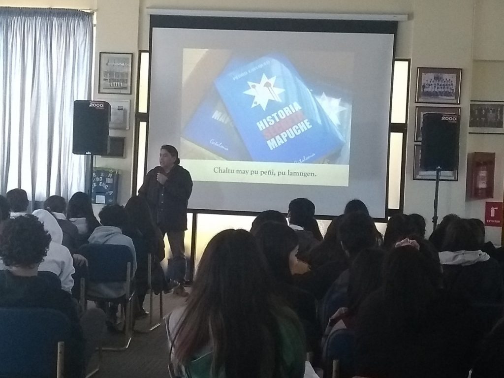 El miércoles 7 de agosto se desarrolló la segunda parte del proyecto «Un paseo por la cultura y las artes», presentado por la señora Mónica Álvarez y financiado por el Centro general de padres. En esta ocasión contamos con la presencia del periodista y escritor Pedro Cayuqueo quien habló sobre su libro Historia secreta Mapuche, tanto los alumnos como los profesores asistentes pudieron disfrutar de esta charla y saber que a pasado con el pueblo mapuche a través del tiempo, un pueblo de gente noble y aguerrida.