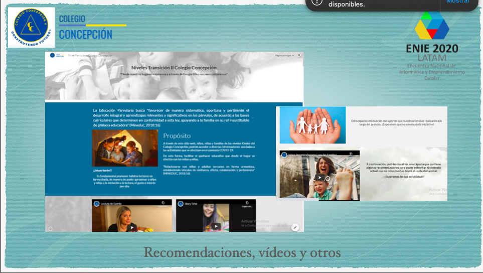 Considerando el actual contexto y la necesidad de reorientar las prácticas pedagógicas que se implementan, para asegurar la calidad de los procesos de enseñanza aprendizaje, es que los niveles Transición II de nuestro Colegio han efectuado, desde inicios de año la iniciativa denominada: “Desde nuestros hogares viajaremos y a través de Google Sites nos reencontraremos”. La cual, se orienta a generar diversas alternativas motivadoras y enriquecer las prácticas pedagógicas.