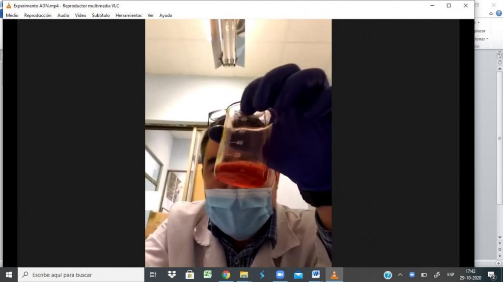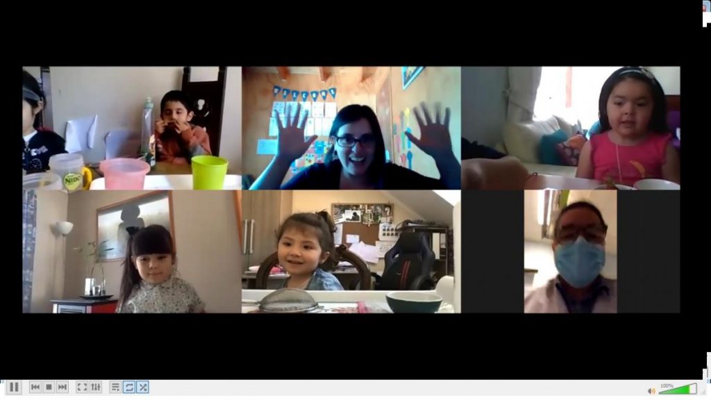 Por su parte el Sr. Jorge Dagnino, realizó un enlace en directo desde uno de los laboratorios de la Universidad de Concepción, donde nuestro Apoderado nos enseñó qué es el ADN y como extraerlo desde las fresas. Experiencia que no sólo cautivo a los niños y niñas a realizar el experimento junto a él, sino también hizo que una de nuestras estudiantes se motivara para ser “una científica cuando sea grande”.