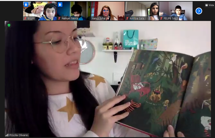 Los días 2 y 3 de noviembre los cursos 3° B y 3° A, recibieron en su clase de Lenguaje la visita vía virtual de una mediadora de lectura de la biblioteca Viva, cuyo objetivo de desarrollar el gusto por los libros , para ello realizaron la lectura de cuentos, libros álbum “ Los Vecinos “ de Einat Tsarfati , “Soñar no cuesta nada” de Alberto Montt ,”El pequeño jardinero” Emily Hugles, “Cómo atrapar una estrella” Oliver Jeffers. Fue una actividad entretenida y motivadora para los alumnos que participaron con entusiasmo.