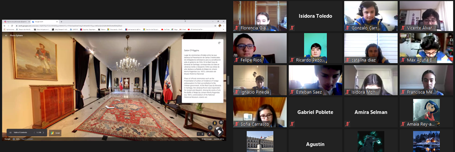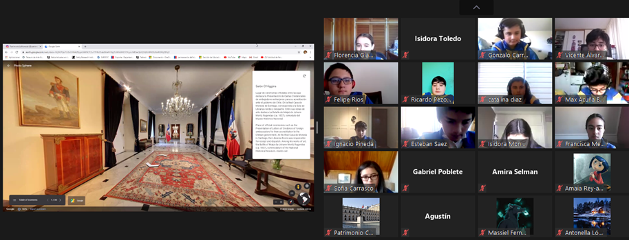 Dentro de las dificultades del contexto que vivimos hoy, la tecnología nos permite realizar visitas a lugares distantes, por esto los alumnos y alumnas, el día 9 de noviembre el 6° básico A, tuvieron la oportunidad de conocer el Palacio de la Moneda, lo que permitió visitar distintas dependencias donde los alumnos pudieron apreciar los salones y pinturas que pertenecen al Patrimonio de la Nación.