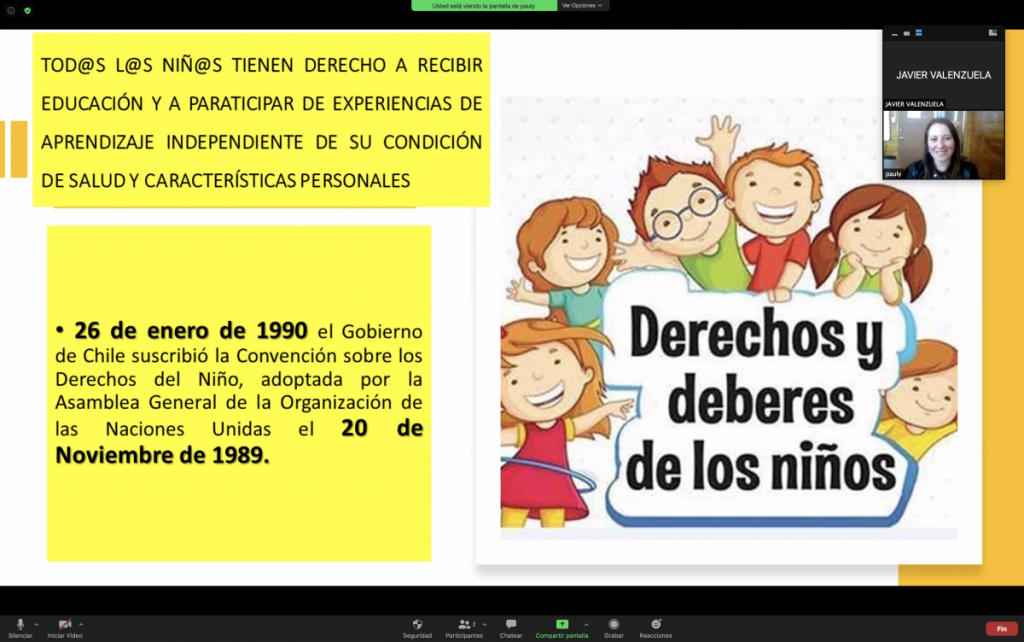 Sr. Felipe Muñoz 4°A «Agradezco la oportunidad de participar en esta iniciativa. Tanto por los derechos, como por los deberes de nuestros niños. Es un curso cálido y me impresionó el nivel de los comentarios y preguntas.»