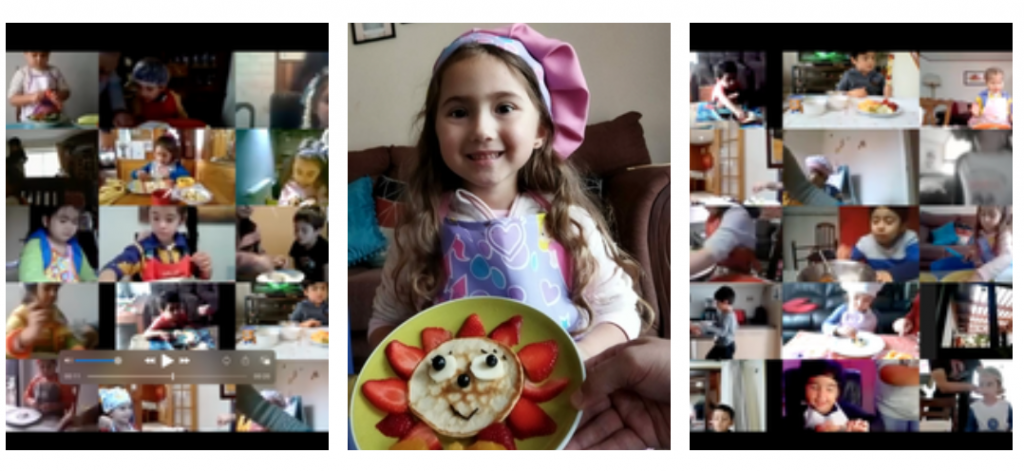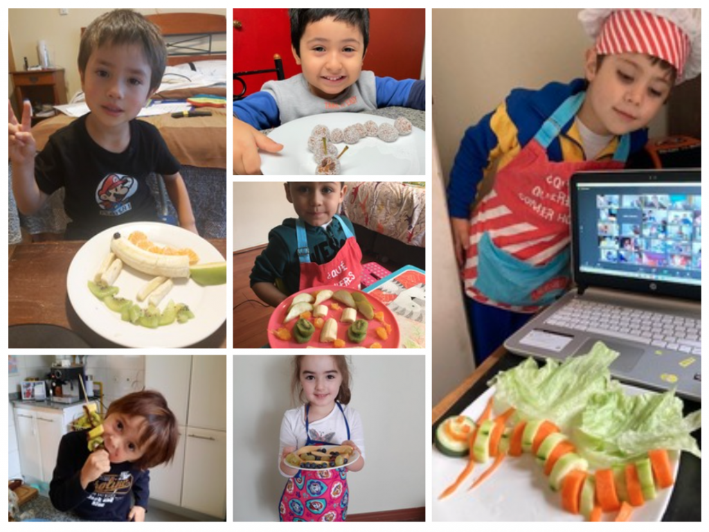 El jueves 8 de abril, desde las 12:30 a 13:00 horas, los alumnos y alumnas del nivel parvulario, participaron de un taller masivo de cocina saludable, guiado por la profesora Scarleth Moreno, donde se desarrollaron distintos platillos creativos preparados con alimentos saludables, para celebrar la semana de la actividad física y la salud.