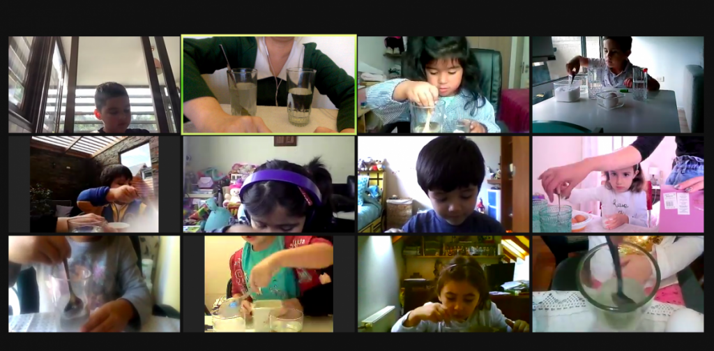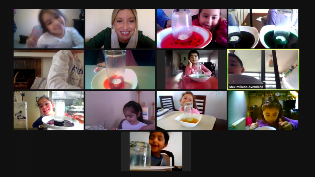 En torno a ello, es que niños y niñas de NT2 B en las sesiones del mes de abril del momento de Exploración del Entorno Natural, han podido realizar diversos experimentos que les permitan desarrollar procesos de experimentación, a través de los cuales poder formular preguntas, realizar comparaciones, predecir, resolver problemas, valorar, razonar y comprobar sus predicciones iniciales. Entre ellos se encuentran: el del huevo que flota en agua con sal por la mayor densidad, el de la vela que se apaga y absorbe líquido de color por el oxígeno que se consume asociado a la disminución de presión, el globo con agua que no explota al aplicar calor y el de las mezclas homogéneas de la ecoplasticina.