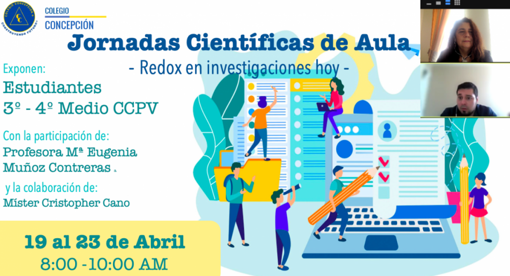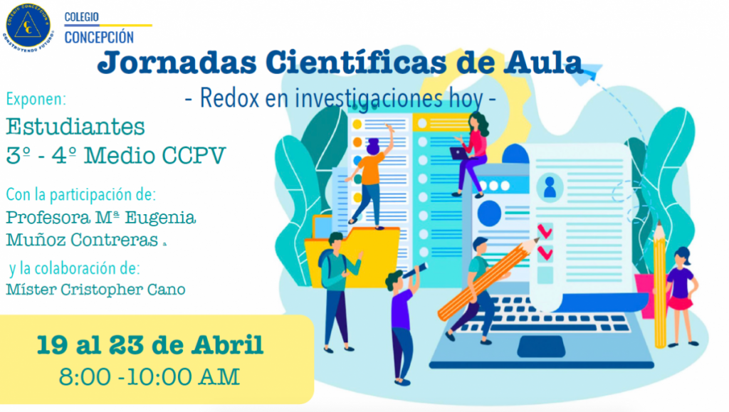En la semana del 19-23 abril, se llevó a cabo la “I Jornada Científica de Aula” en la asignatura de Química Electivo, que generaron un impacto positivo en los estudiantes de 3º y 4º medio del Colegio Concepción, que participaron en esta iniciativa de trabajo de articulación con la asignatura de Inglés.