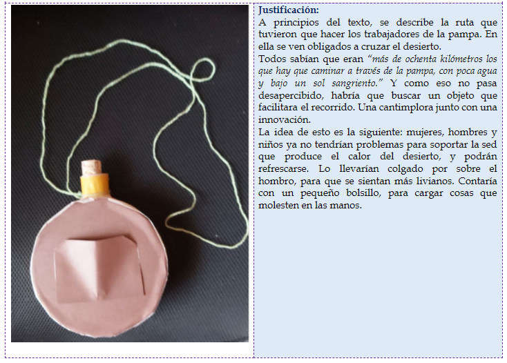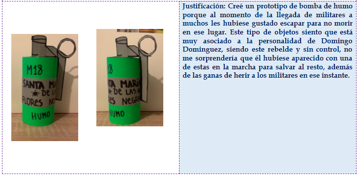 Finalmente, justificaron la pertinencia del objeto con el contenido de la narración. Evidenciando amplio conocimiento del tema, siendo creativos y demostrando esfuerzo en la fabricación del producto el que se configura como un elemento interesante y adecuado a la historia.