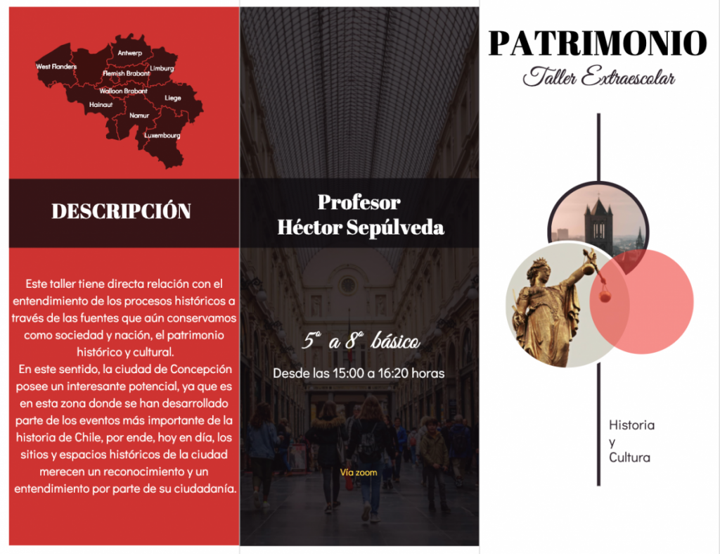 En este taller se busca que los y las estudiantes potencien el uso del patrimonio histórico como recurso didáctico en la enseñanza y entendimiento de la historia penquista y valoren los bienes patrimoniales de la ciudad de Concepción y el sentido de pertenencia e identidad, a través de diversas actividades realizadas a forma online.