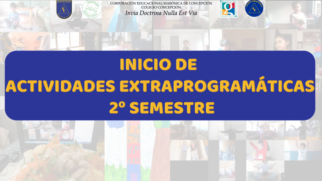 El Departamento de Extraescolar del Colegio Concepción informa a la comunidad educativa que se han iniciado los talleres extraescolares este 2º semestre, los cuales corresponden al área artística, científica – cultural y deportiva.