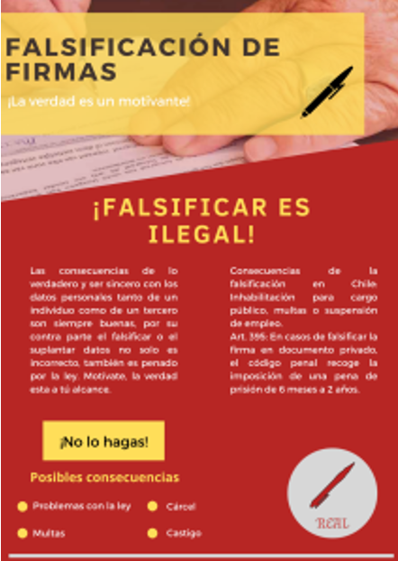La campaña propagandística contiene, en primera instancia, un breve informe que da a conocer los procesos que llevaron a cabo en su reflexión: el porqué de la selección del tema, las metas que pretenden conseguir con ella, su importancia para el contexto en el que estamos inmersos y, para finalizar, elaboraron un comentario crítico sobre los aspectos positivos y negativos de lo leído. En segundo término, crearon un afiche que incorporó los elementos teóricos revisados en clase indicando la función que cada uno de ellos cumple dentro de su creación.