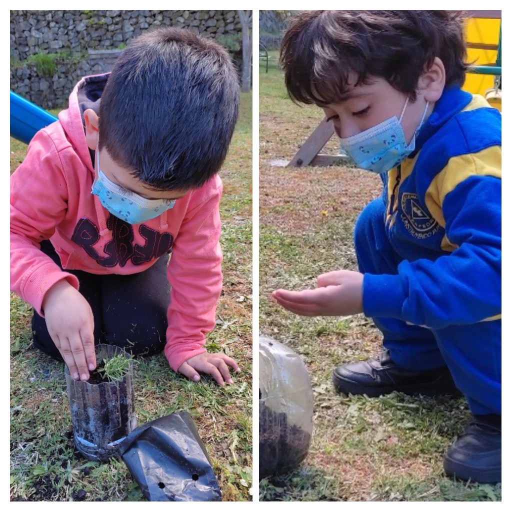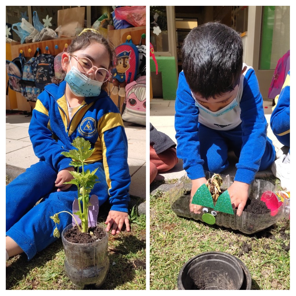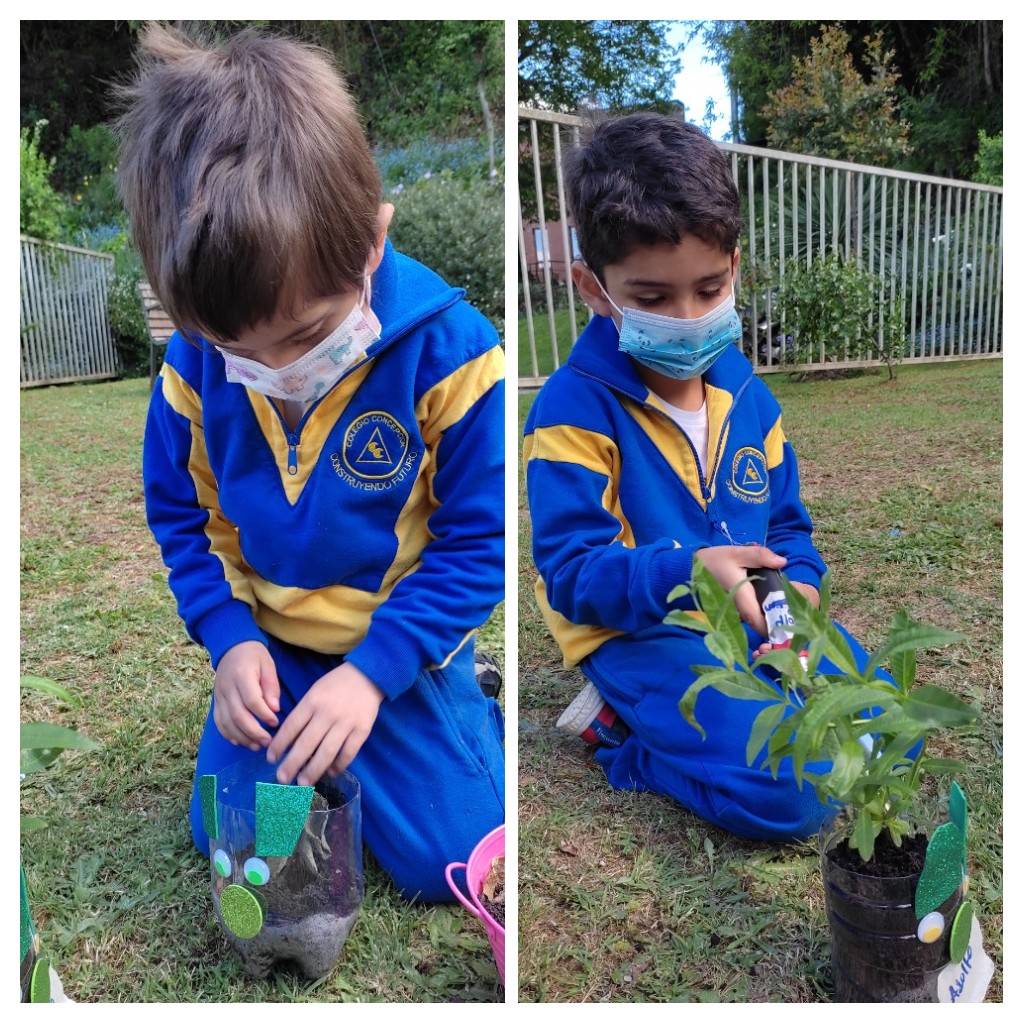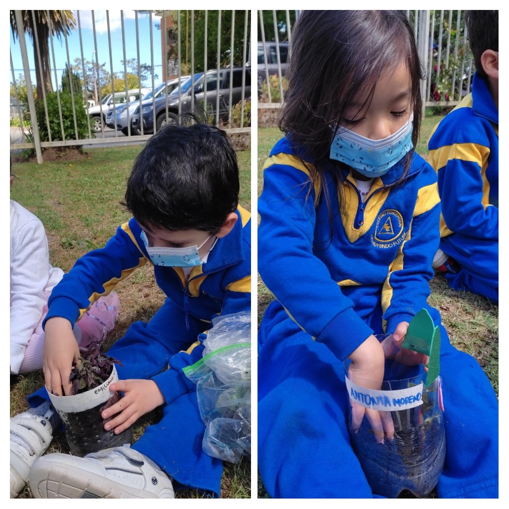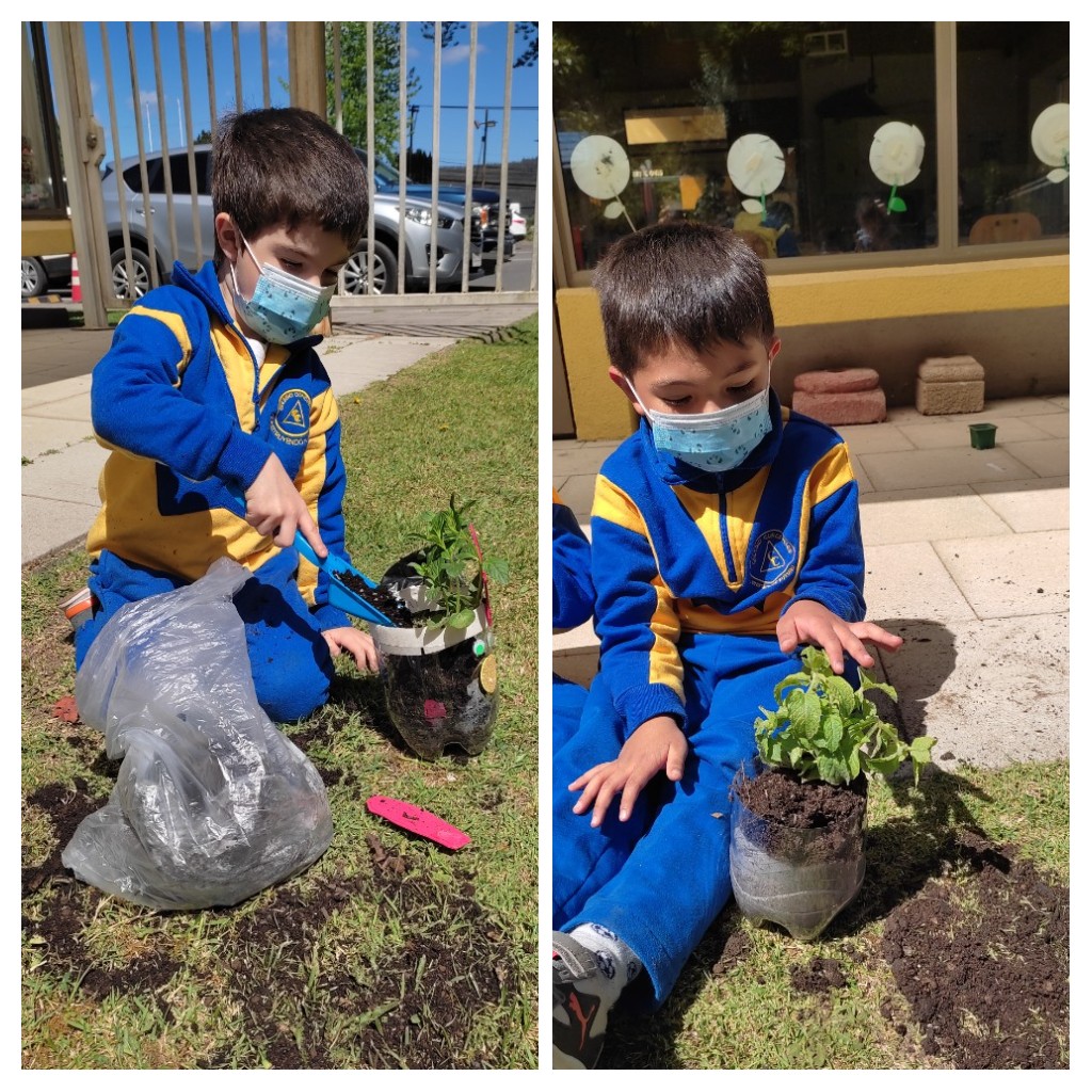Como una forma de promover el reciclaje, la ecosustentabilidad, los niños y niñas de los niveles Transición 1 A y B, participaron de la elaboración de su Mini huerta, donde en primer lugar crearon sus propias macetas con material reciclado (botella) y adornos de distinto tipo.