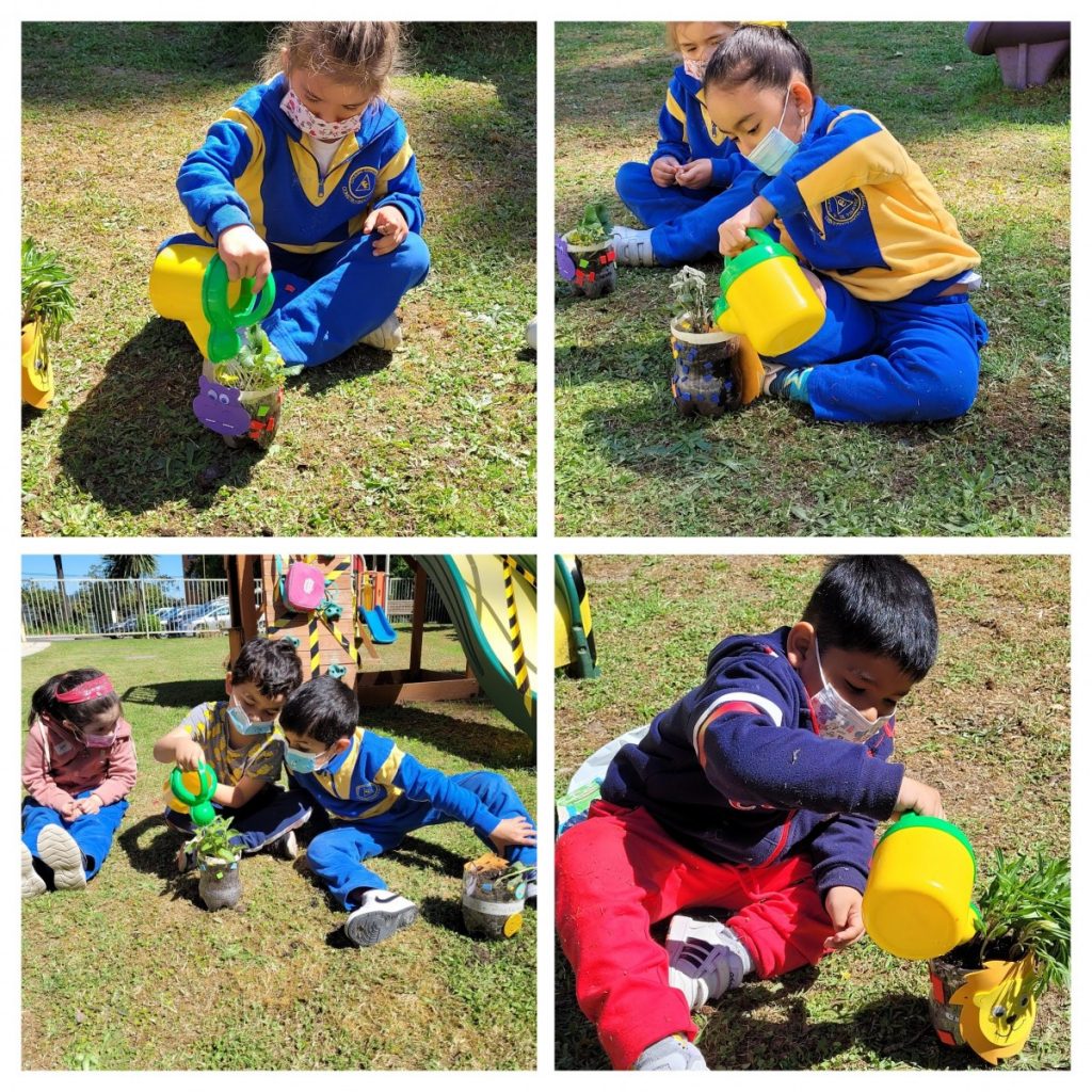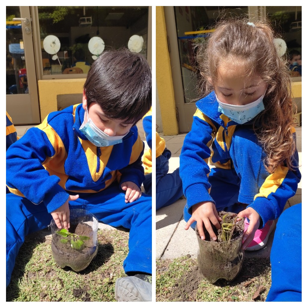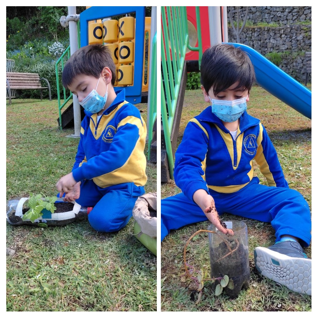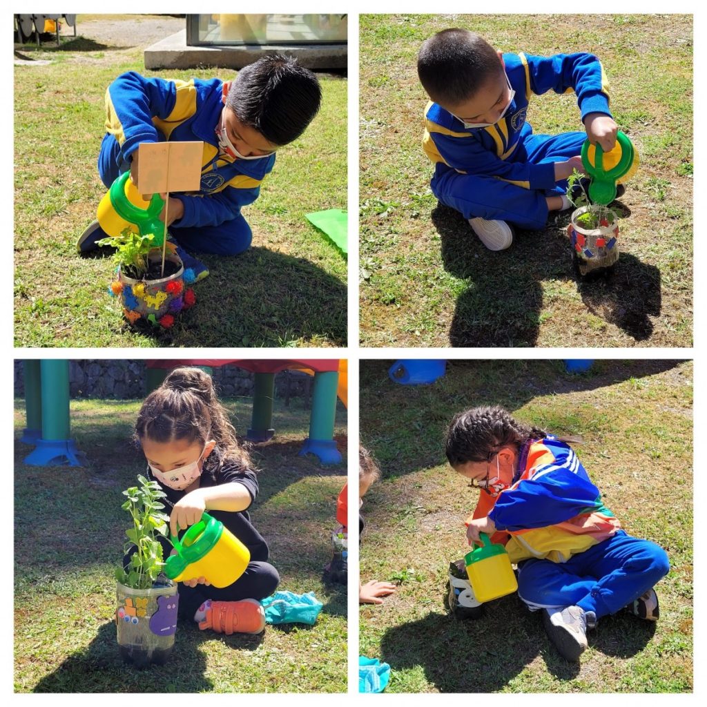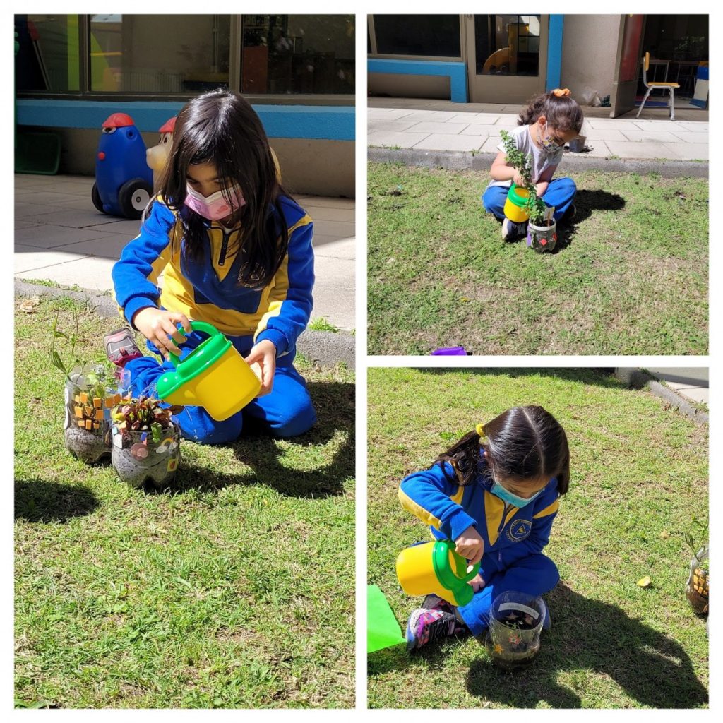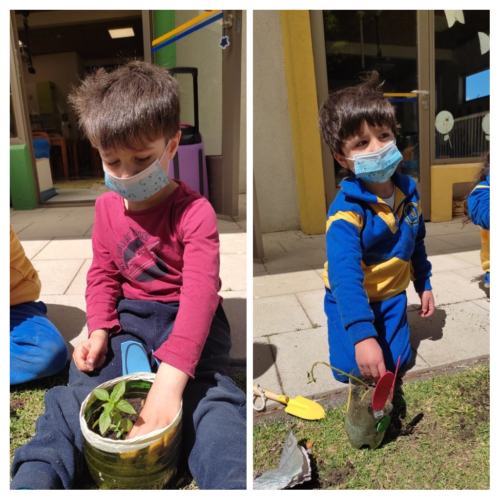 Como una forma de promover el reciclaje, la ecosustentabilidad, los niños y niñas de los niveles Transición 1 A y B, participaron de la elaboración de su Mini huerta, donde en primer lugar crearon sus propias macetas con material reciclado (botella) y adornos de distinto tipo.