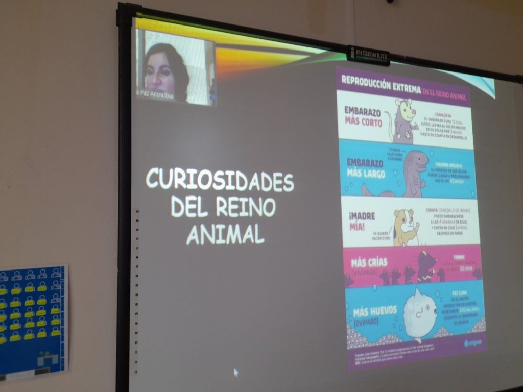 La Sra María Paz, por su parte, nos compartió sus impresiones: «Participar de la actividad Aula Compartida con mi presentación sobre Curiosidades del Embarazo y el Crecimiento, fue una experiencia muy conmovedora; ver a los niños como han crecido me causó una enorme impresión, ver como son capaces de formular preguntas y reflexionar sobre temas. ¡Me pusieron mucha atención! Fue para mí un honor y agradezco la oportunidad de darles información sobre temas que a mí me conmueven como es el embarazo y el crecimiento no solo en los seres humanos, sino que en el reino animal.