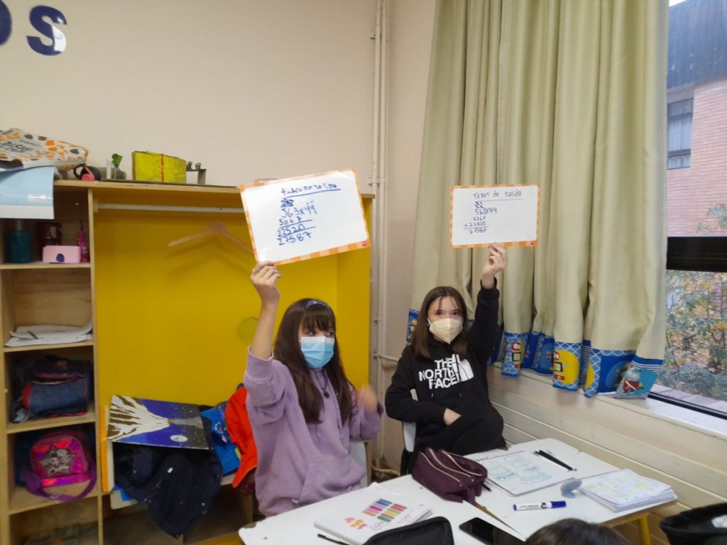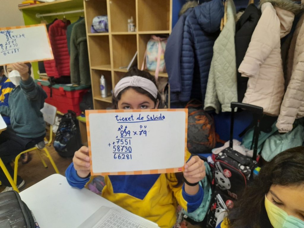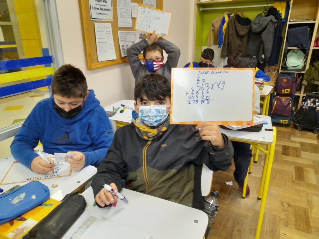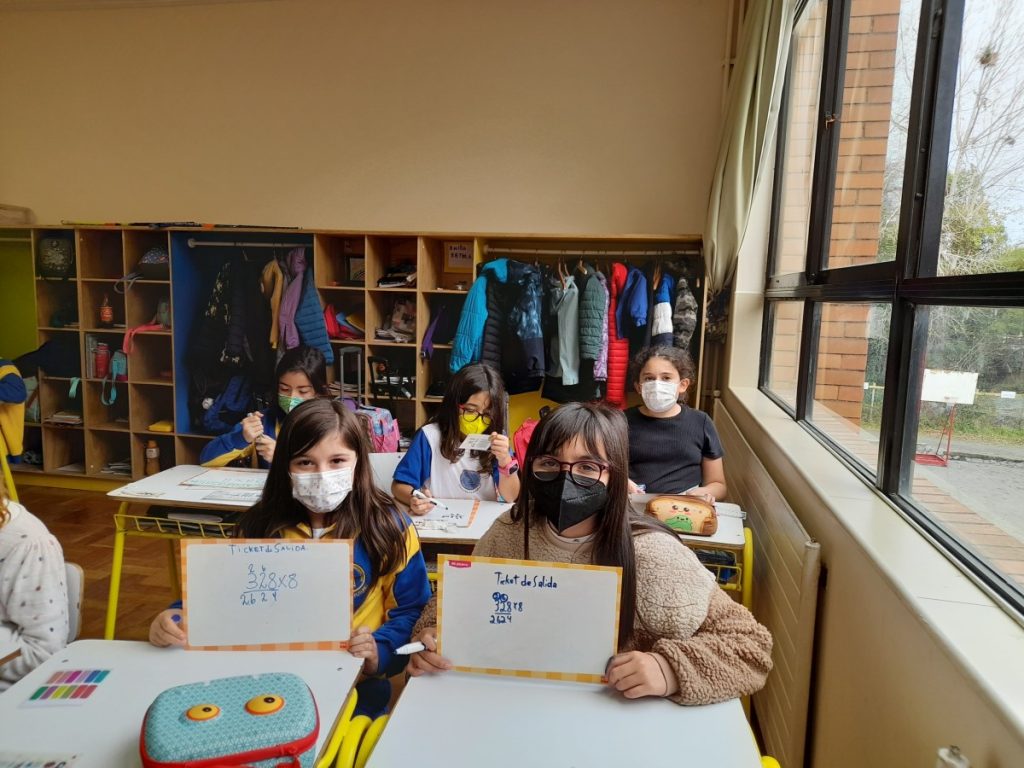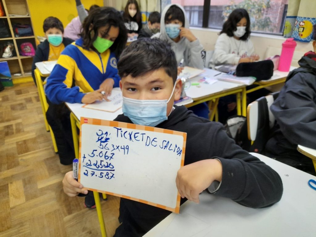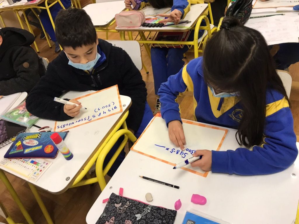 Durante las clases de Matemática los estudiantes de los niveles 4° y 5° básicos, trabajan aplicando diversas estrategias para llegar a los resultados de los cálculos que han realizado.