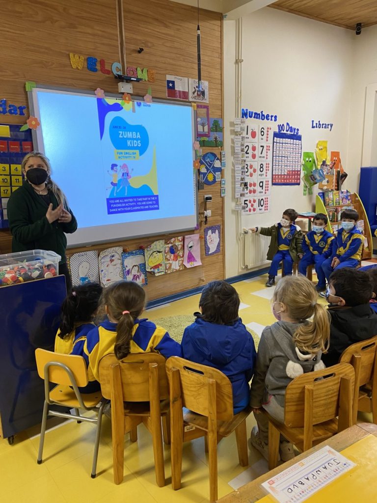 En esta oportunidad niños y niñas desde medio mayor hasta tercero básico participaron de una divertida clase de Zumba, actividad en la que bailaron diversas canciones siguiendo comandos en inglés.