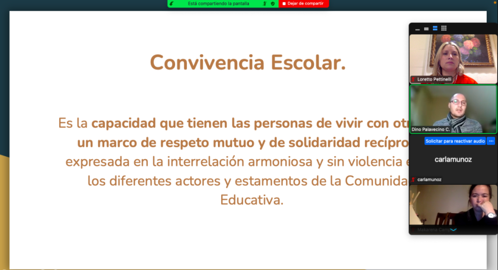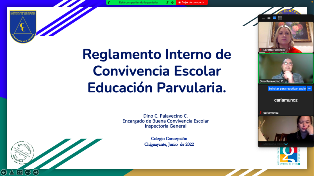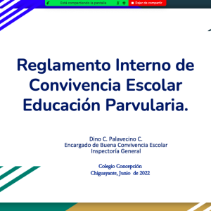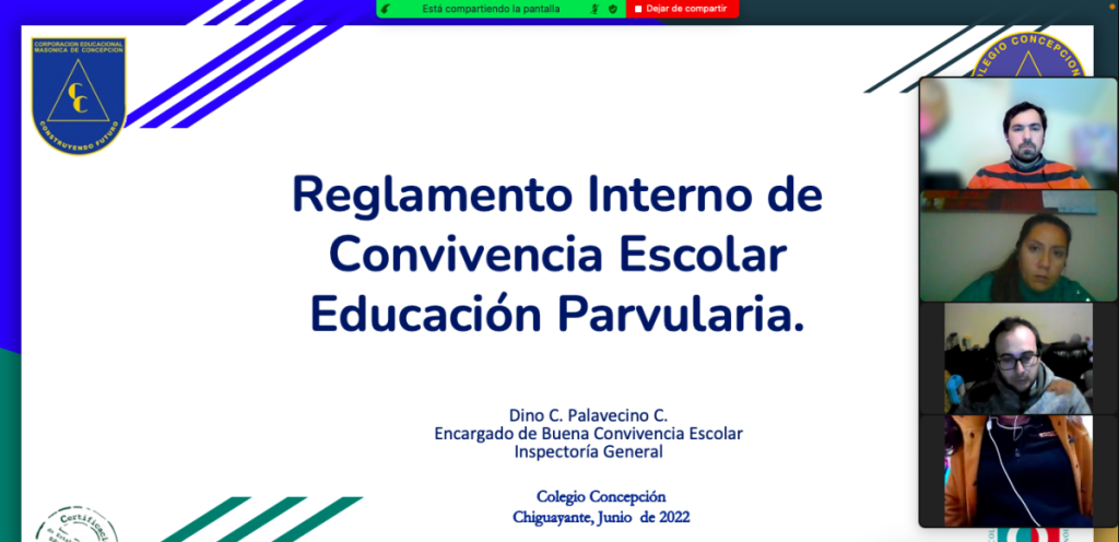 Con la participación de una gran cantidad de familias del Depto. de Formación Inicial de nuestro colegio se desarrolló la Charla virtual denominada: “Aplicación del Reglamento de Buena Convivencia Escolar Depto. Formación Inicial”, este martes 28 de junio a las 18:30 horas.
