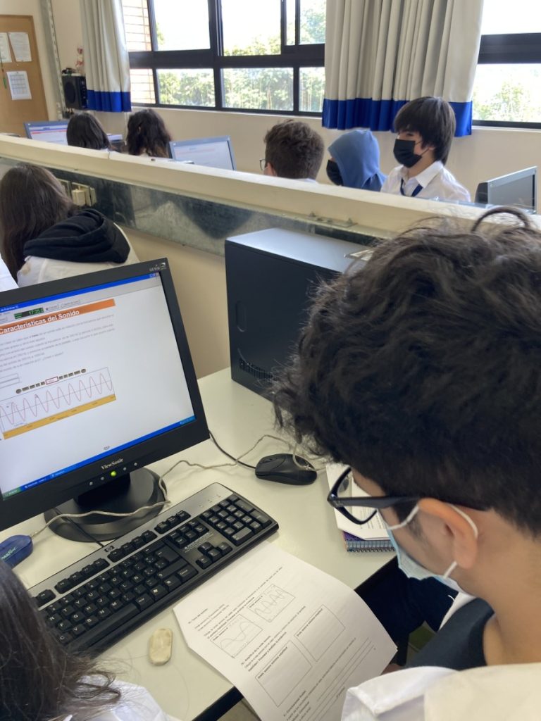 Los primeros medios, de nuestro colegio en la asignatura de física, exploraron las características del sonido en un laboratorio de sensores. Dicha actividad está enfocada a atender la alfabetización científica para potenciar habilidades de investigación tales como explorar hechos y fenómenos, analizar problemas, observar, recoger y organizar información relevante para determinar variables de estudio y plantear una hipótesis de estudio presentes en la emisión de sonidos de diferentes frecuencias y amplitudes. Además, de ayudar a los estudiantes a establecer conexiones entre los conceptos científicos teóricos y los cotidianos. Por otra parte, en la línea de las habilidades del siglo XXI nuestros estudiantes contrastaron el nivel de intensidad de sonido mínimo y máximo obtenidos durante el laboratorio con los rangos establecidos por la OMS, quien reconoce el ruido ambiental, como un problema de salud y ambiental creciente que afecta a más de 1000 millones de personas en edades comprendidas entre los 12 y los 35 años.