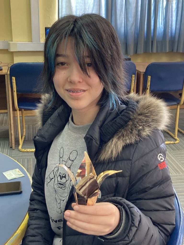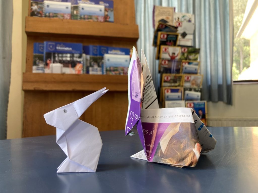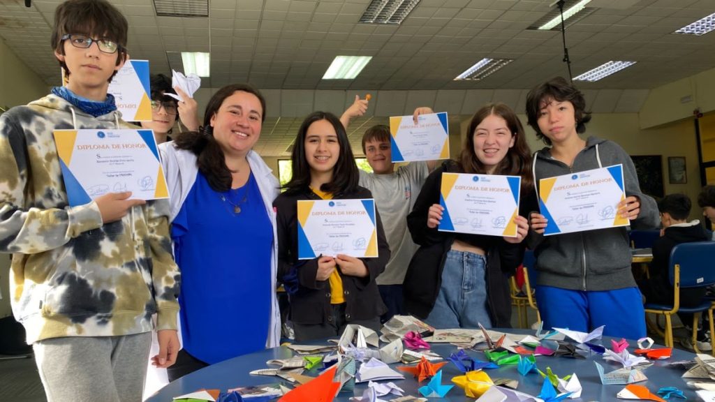 El viernes 11, en el día del origami, el desafío se hizo extensivo a los alumnos y las alumnas desde sexto básico a tercero medio donde pusieron en práctica su motricidad, creatividad, memoria y constancia para conseguir modelar el medio que nos rodea. El producto de este hermoso trabajo fue compartido con el resto de la comunidad educativa en la biblioteca de nuestro colegio.