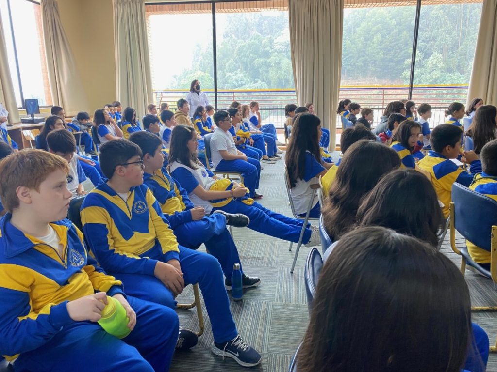 Maria Alejandra Valdivia, expone a estudiantes de 5° y 6° Básico acerca de su profesión, su vocación y por supuesto desde su experiencia como ex alumna motiva al desarrollo valórico que nuestro colegio declara en su currículum.