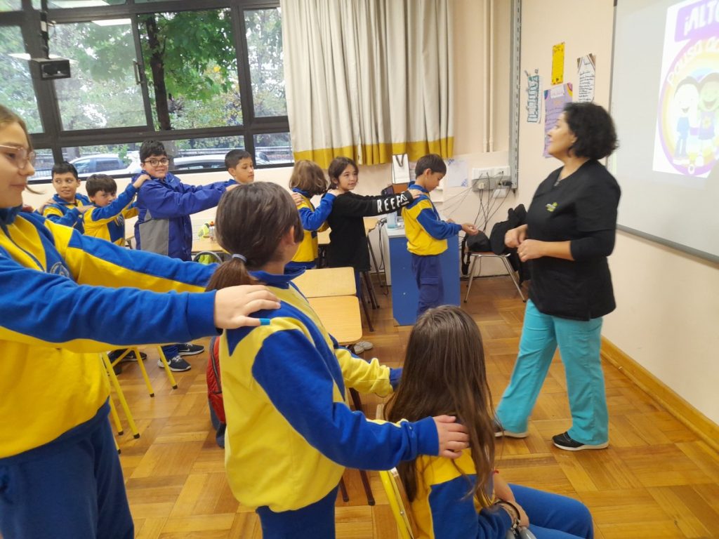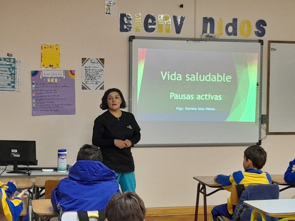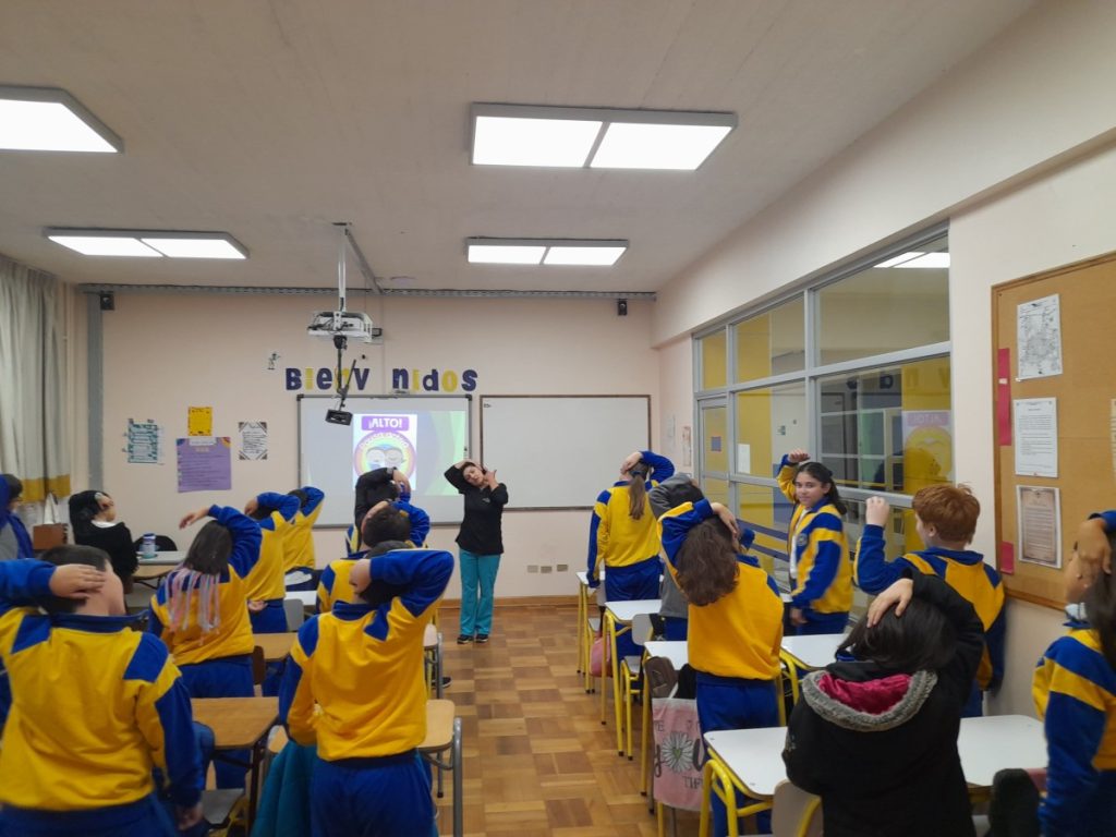 En el contexto del Proyecto » Educación para la salud y la calidad de vida», nos visitó en el 5°B el martes 11 de abril, la apoderada y kinesióloga Sra. Daniela Soto Palma, con la finalidad de compartir estrategias de cómo aplicar pausas activas durante la jornada escolar y beneficiar así nuestra salud y bienestar. Los estudiantes se mostraron participativos y agradecieron las estrategias compartidas.