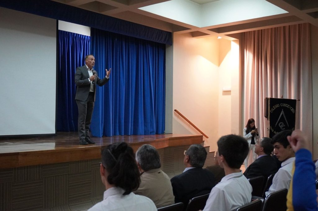En su exposición describió desde sus inicios como deportista en el Colegio hasta su consagración a nivel internacional. Transitando por sus logros deportivos como personales, en los que recalcó que la responsabilidad y los estudios son fundamentales para cualquier deportista. Comentó el alto honor que le correspondió cumplir como abanderado nacional en los Juegos Olímpicos. Compartió sabrosas anécdotas y reforzó que debe primar el espíritu deportivo permanentemente en el actuar de cada uno de nosotros al practicar alguna disciplina.