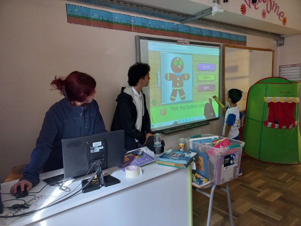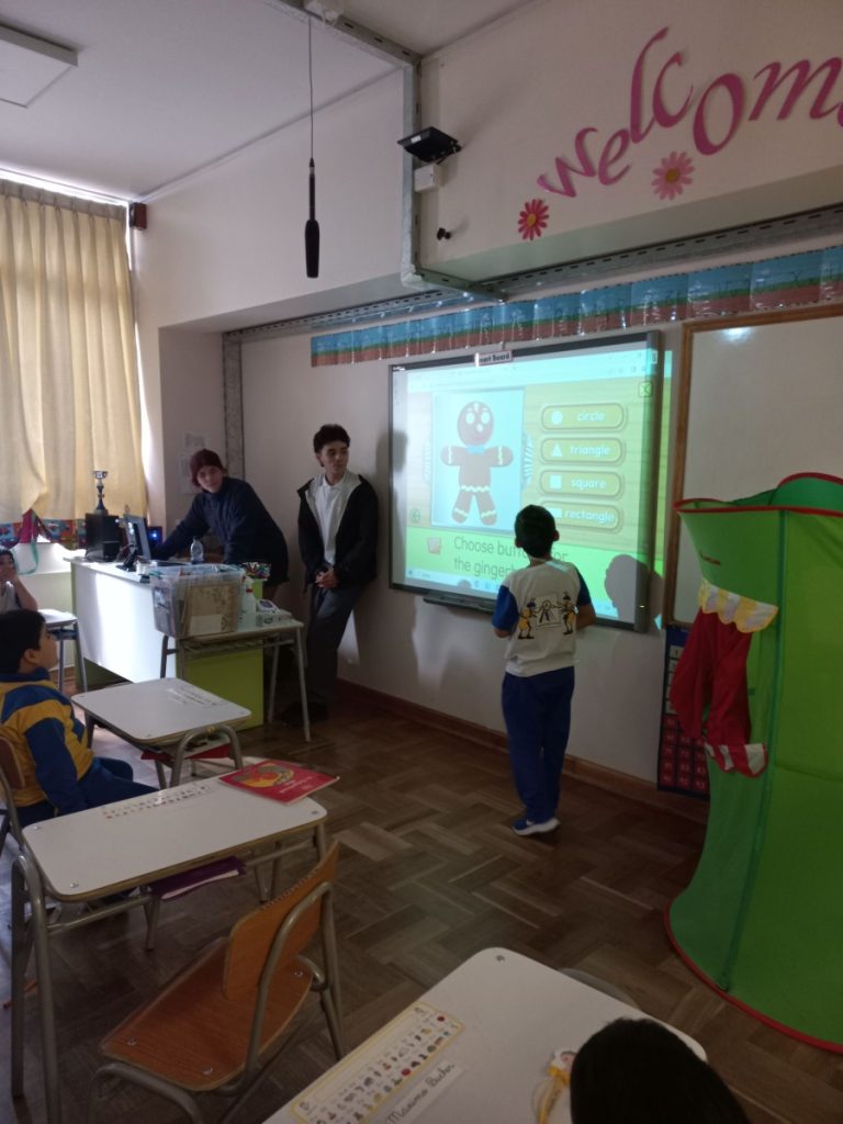 Within the context of the international book day, our students from 12 th grade B visited their primary school classmates, 1 st grade B elementary, with the purpose of unveiling some of the charms of Reading. The activity consisted of sharing videos and songs related to the classics to be read. After the story was read and finished, our young learners answered some yes-no questions and played different games to reinforce the stories.