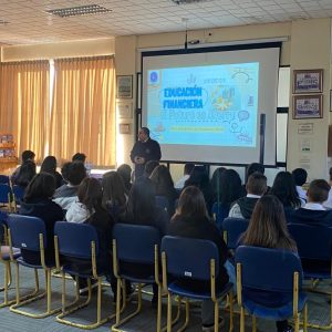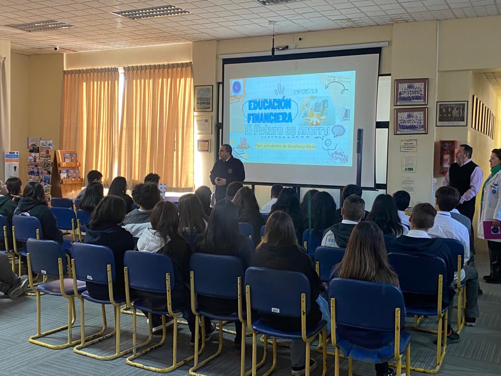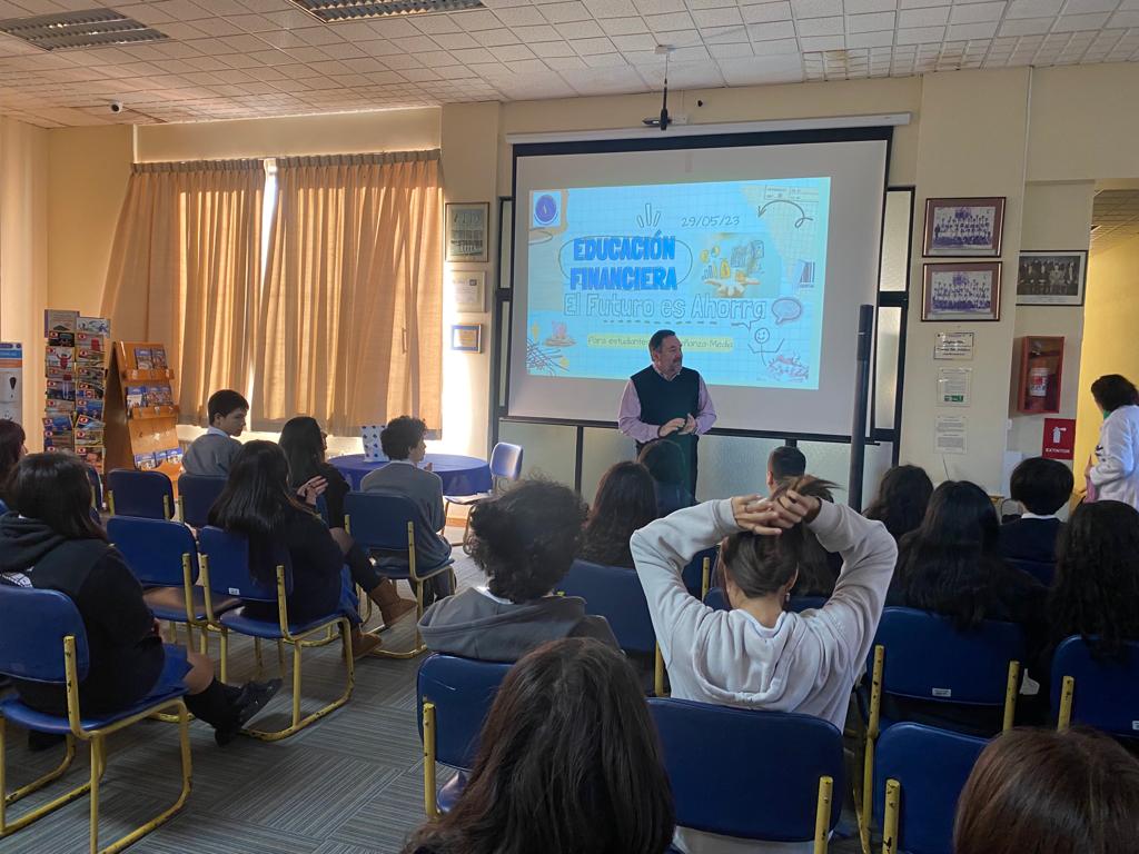 El lunes 29 de mayo se realizó la 2° charla de formación ciudadana en la Biblioteca de nuestro Colegio, el tema fue la “Educación Financiera” y el expositor fue Juan Pablo Pinto Jeldres. Ingeniero comercial, ex director de SERNAC Concepción, exalumno y apoderado de nuestro Colegio. Los alumnos que participaron eran de los niveles 1° y 2° medio, demostraron gran interés por el tema, a través de preguntas y reflexiones sobre impuestos, ahorro, presupuesto e instrumentos financieros.