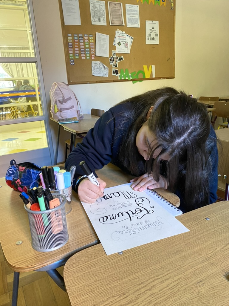 El taller extraescolar de “Lettering” se realiza los días lunes para el nivel enseñanza básica (4º a 8º básico) y miércoles para enseñanza media a cargo de la monitora Carold Velásquez han formado el “Club de lettering”, con el objetivo de plasmar en papel anécdotas y actividades que los estudiantes realizan en el Colegio, a continuación algunas imágenes: