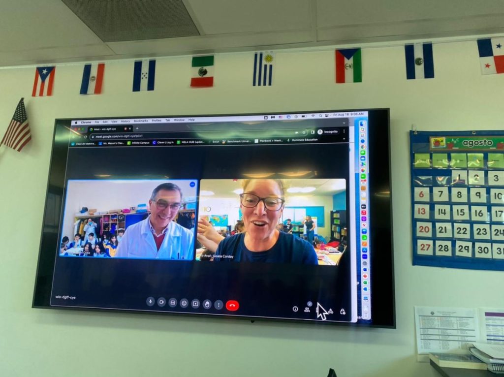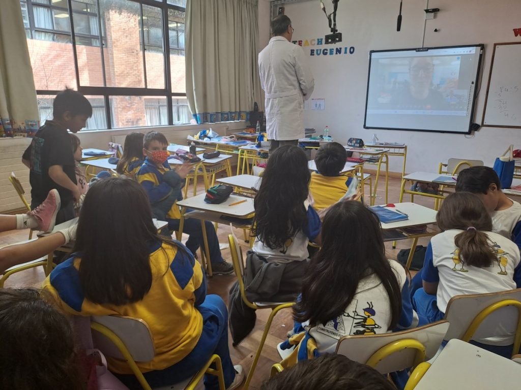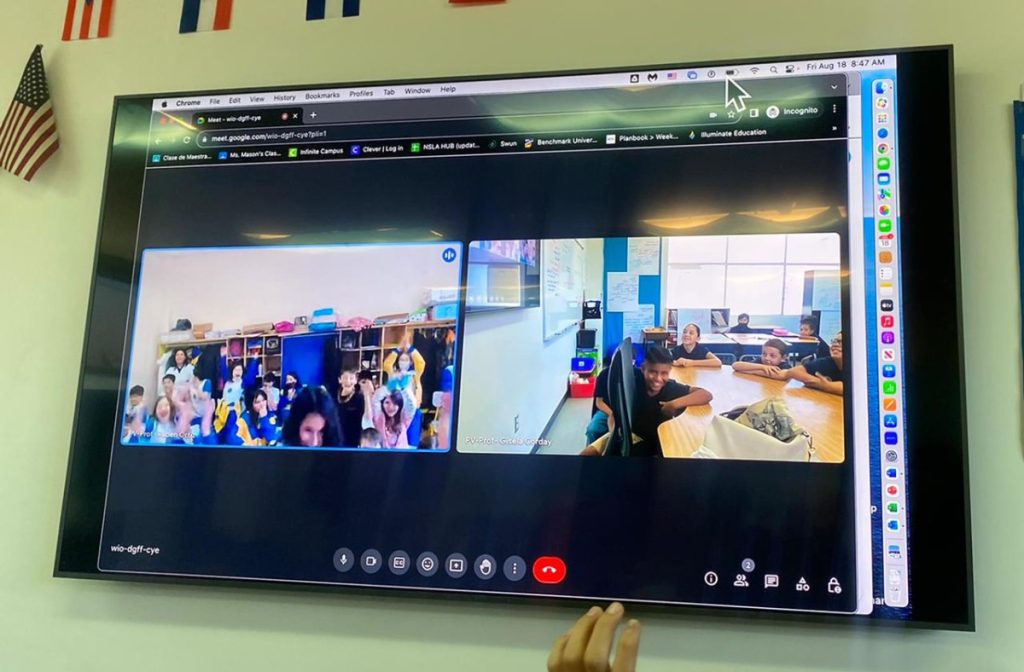 Hoy visitaron Norton Science and Language Academy, desde allí se conectaron de manera sincrónica con un curso de nuestro colegio. De esta manera nuestros estudiantes de cuarto básico y sus pares de Estados Unidos, pudieron conversar, formular y responder preguntas y practicar el idioma extranjero que estudian en su colegio, en una distendida y fraterna actividad.