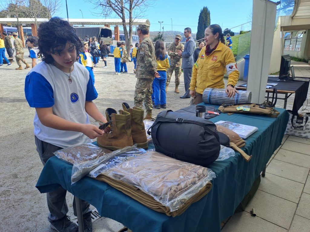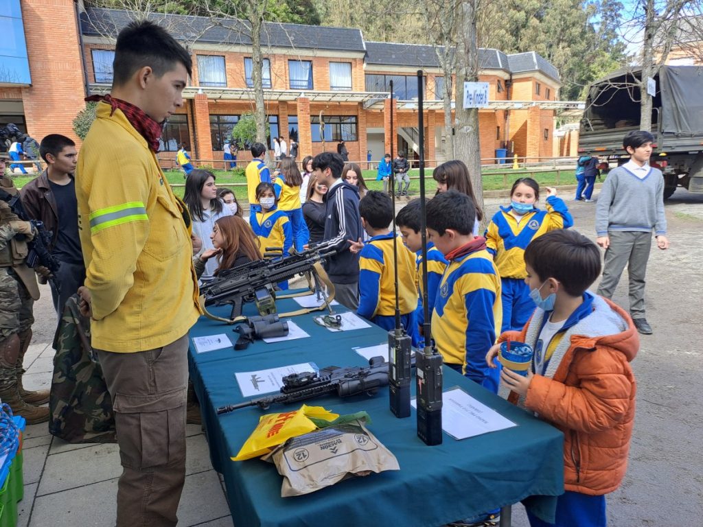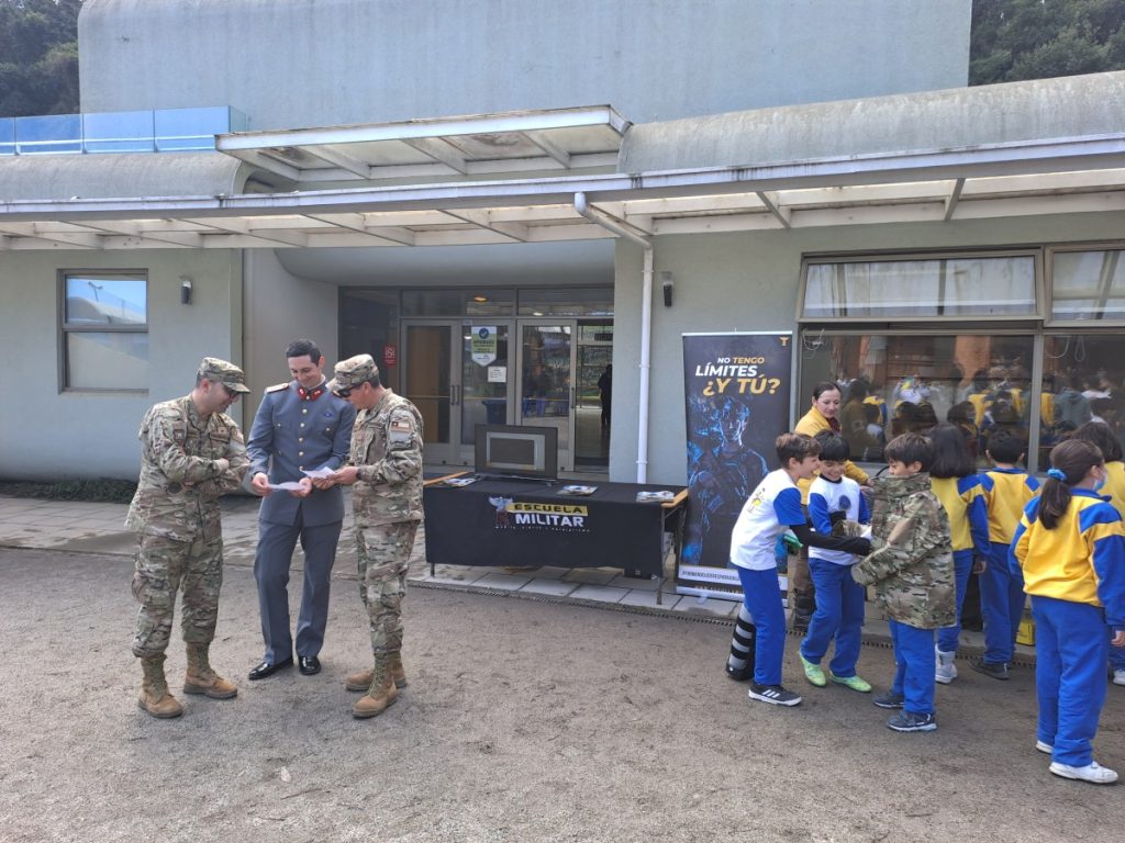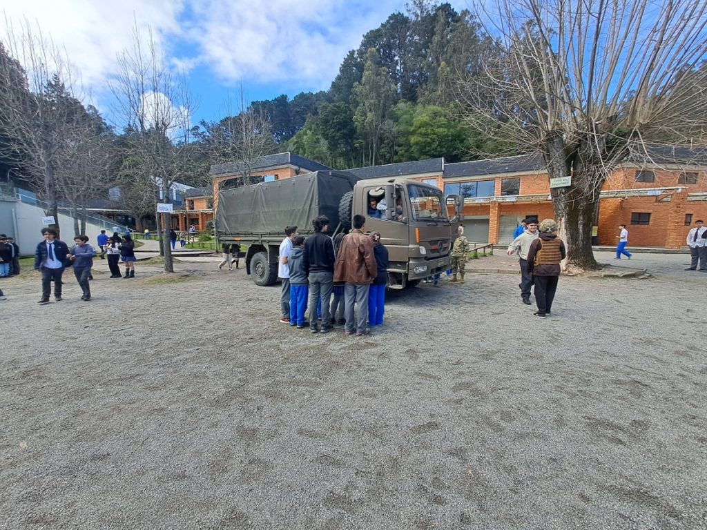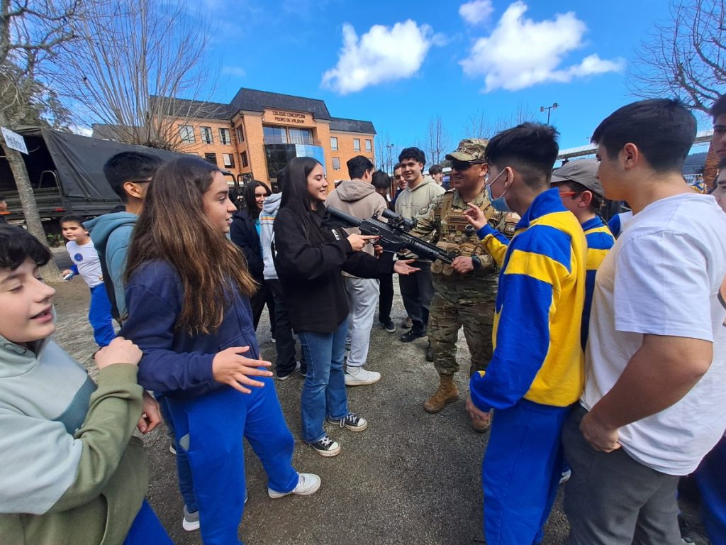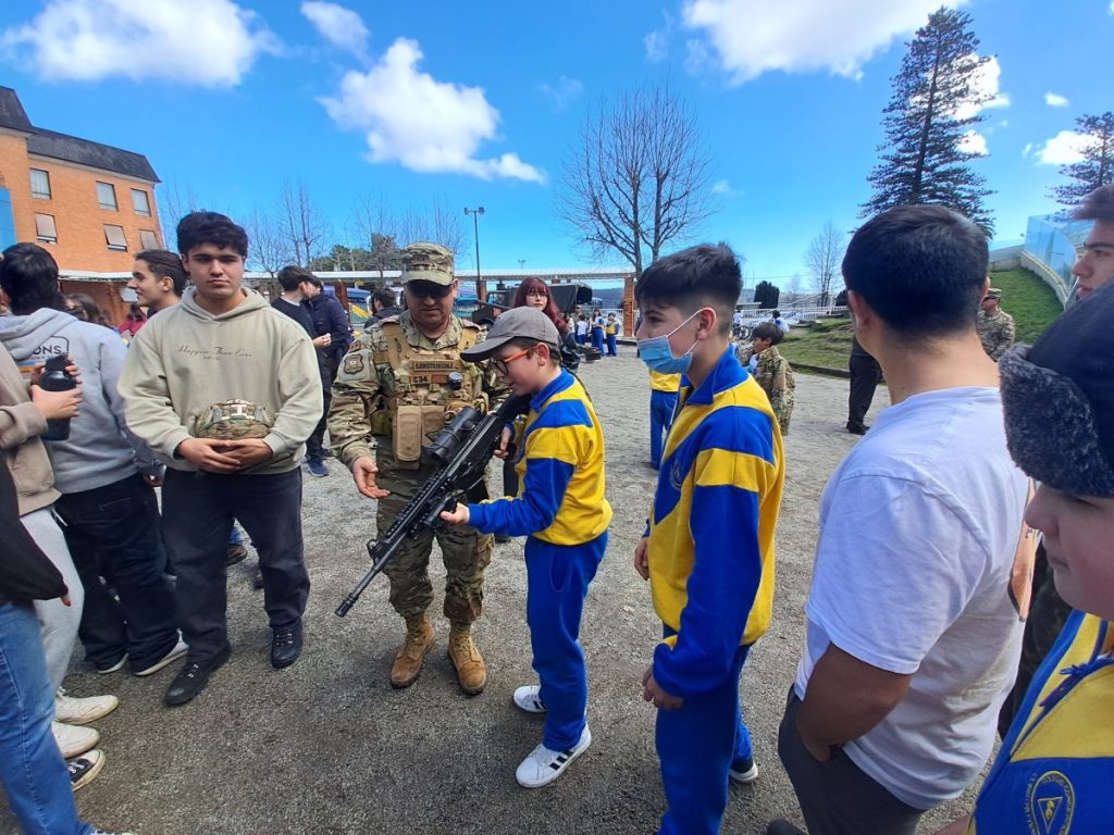En esta oprtunidad los militares ralizaron una muestra de materiales, destinada a nuestros estudiantes y respondieron preguntas de los interesados, particularmente relacionadas con los requisitos de ingreso a la Escuela Matriz.
