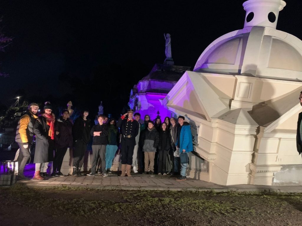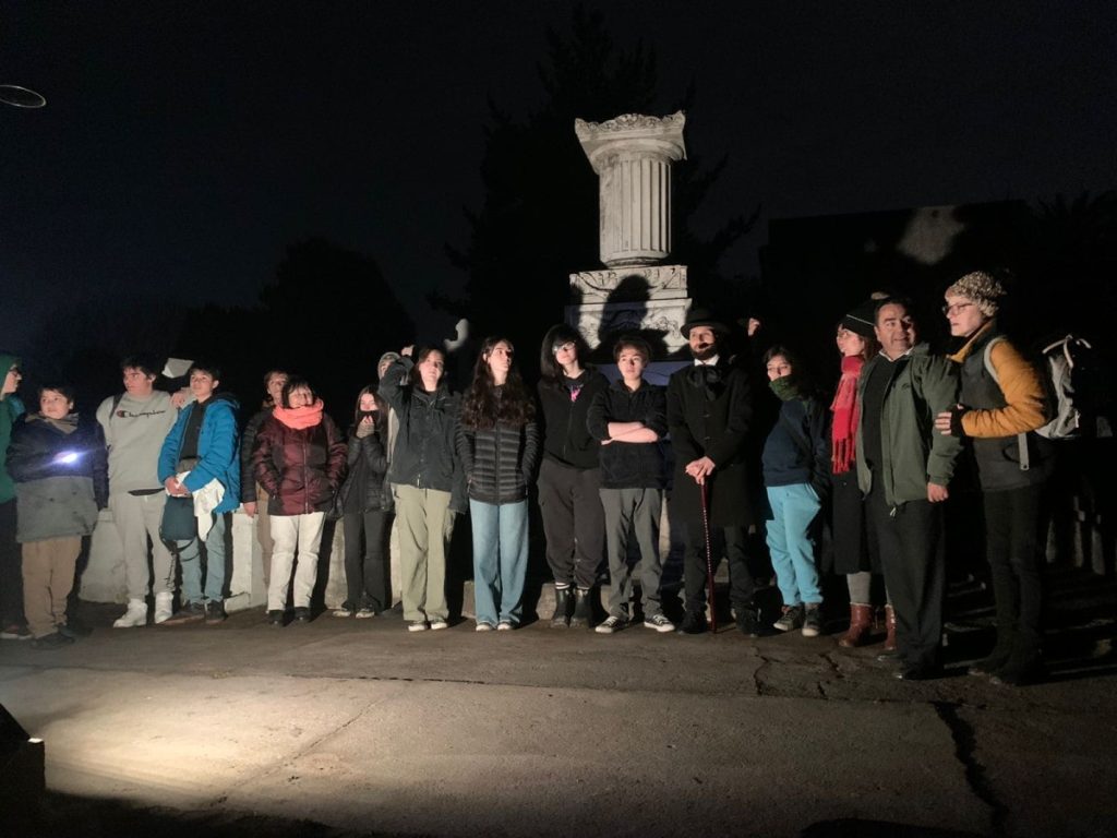 Alumnos del 1°medio B en la asignatura de Historia, realizaron el 31 de agosto, una visita guiada llamada circuito tradicional que busca dar una visión holística al sector patrimonial, involucrando tanto la vida de los personajes, como los elementos arquitectónicos y simbólicos. Recorren de noche las calles del cementerio y se encuentran con personajes como: Juan Martínez de Rozas, Nieves Urrutia, José María de la Cruz, Manuel Zañartu Opazo, entre otros.