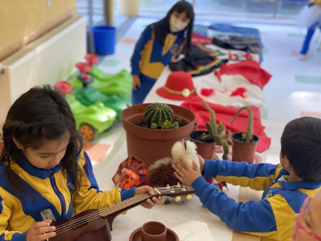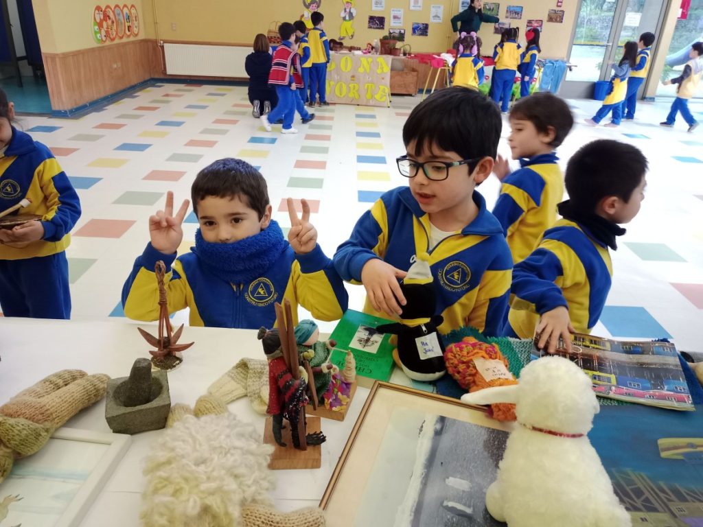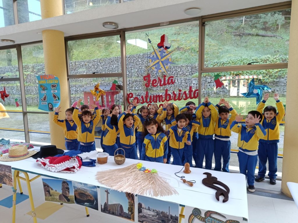 En el contexto de las celebraciones de Fiestas Patrias, el día martes 12 de septiembre, se montó en el hall del edificio parvulario una feria costumbrista. Dicha feria fue implementada gracias al apoyo de apoderados de los distintos cursos del nivel, quienes aportaron con materiales, artesanías, fotografías, entre otros objetos, correspondientes a las zonas norte, centro y sur de nuestro país. A través de esta actividad, niños y niñas pudieron acercarse y conocer un poco más acerca de la cultura chilena, potenciando además el sentido de identidad y pertenencia.