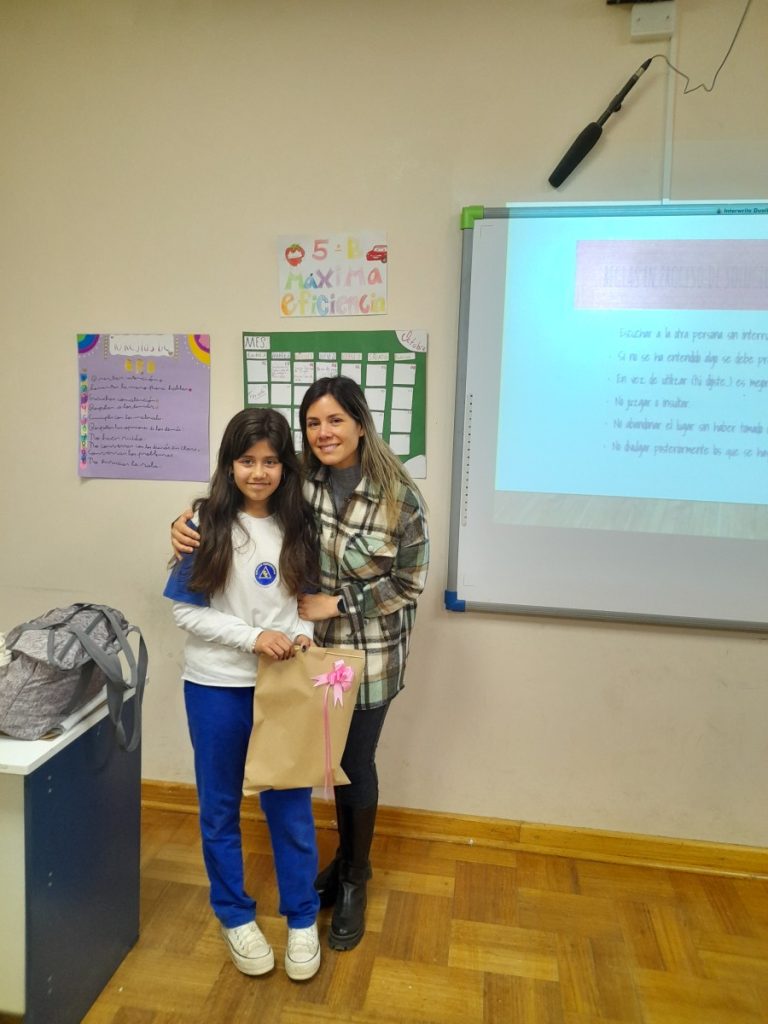 El 10 de octubre, durante la clase de Consejo de Curso del 5°B, asistió nuestra apoderada la Sra. María Jesús Catalán Espinoza , quien desde su experiencia como psicóloga, compartió con los estudiantes un conversatorio de «Resolución pacífica de conflictos». En esta oportunidad se abordaron ejemplos de cómo las personas desde el diálogo y la empatía pueden buscar soluciones y establecer acuerdos, de forma pacífica. Los estudiantes, mantuvieron una excelente participación durante la actividad y agradecieron el tiempo y tema tratado.