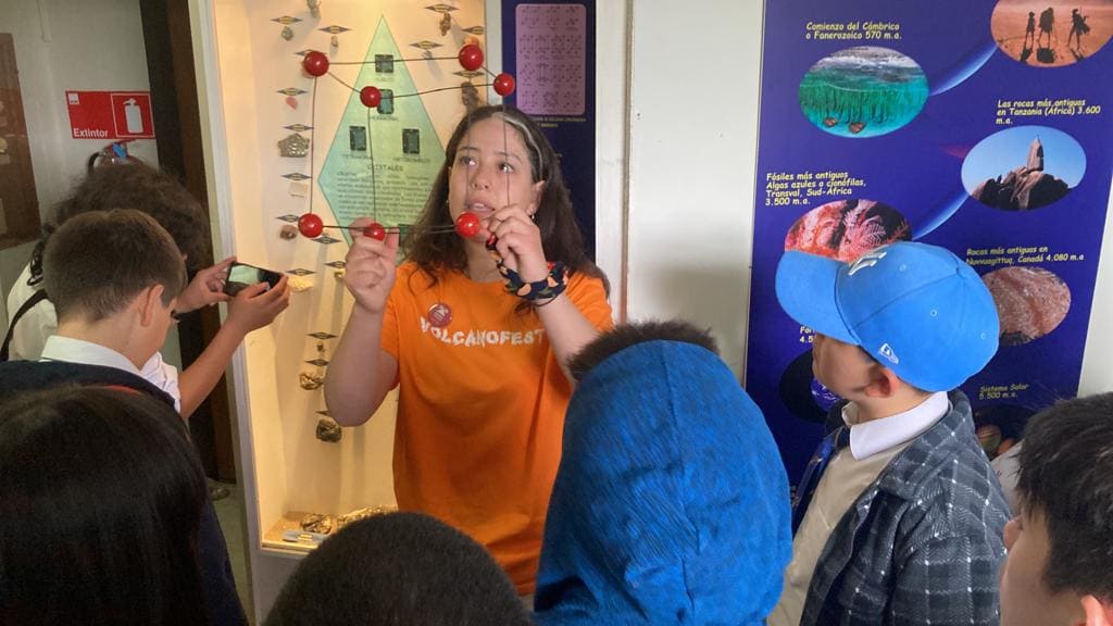 Los estudiantes tuvieron la oportunidad de presenciar los sonidos reales de una erupción in situ, sumergiéndose en la experiencia sonora única que caracteriza a estos eventos naturales. Además, se adentraron en la composición de las rocas volcánicas, observándolas de cerca mediante lupas y microscopios, lo que les brindó una visión detallada de la geología de los volcanes.
