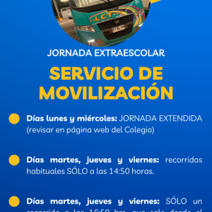 A continuación podrán acceder a la nómina de talleres extraescolares 2024 y a la información del servicio de movilización en horarios de extraescolar.