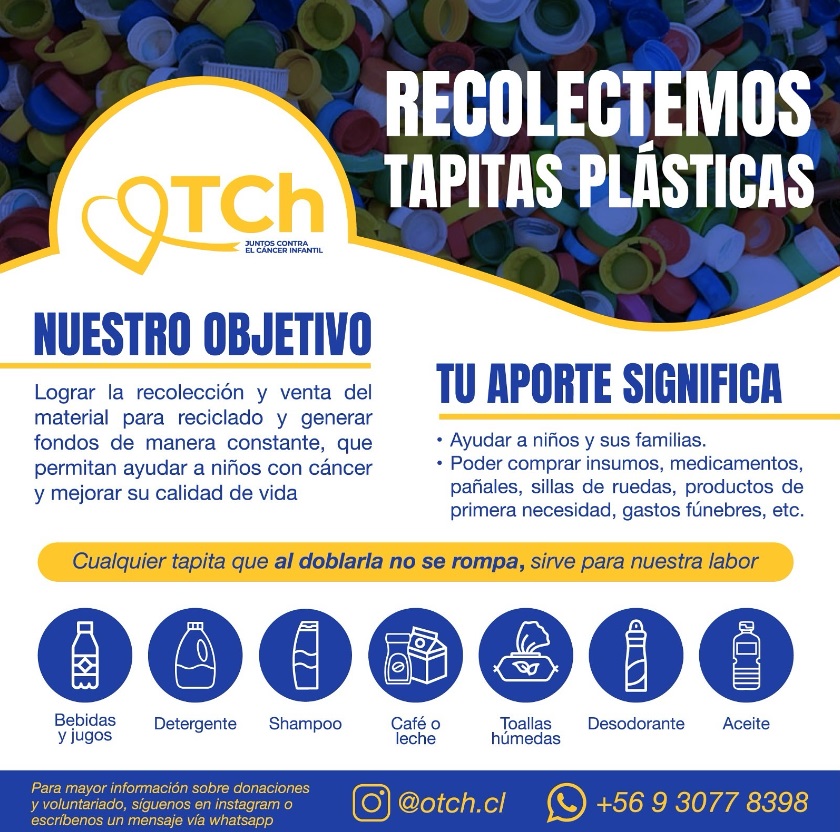 La recolección de tapas plásticas es una iniciativa que busca reducir la cantidad de plástico que termina en los vertederos y los océanos. Estas tapas, que a menudo se pasan por alto, pueden tener un impacto devastador en la vida marina y en los ecosistemas. Al reciclarlas, por un lado, se disminuye la demanda de nuevos plásticos y se promueve una economía circular más sostenible y por otro, ayuda a fundaciones que luchan contra el cáncer infantil como lo es OncoTapitasChile quienes buscan recolectar y vender material para reciclado y generar fondos que permitan ayudar a niños que padecen esta enfermedad.